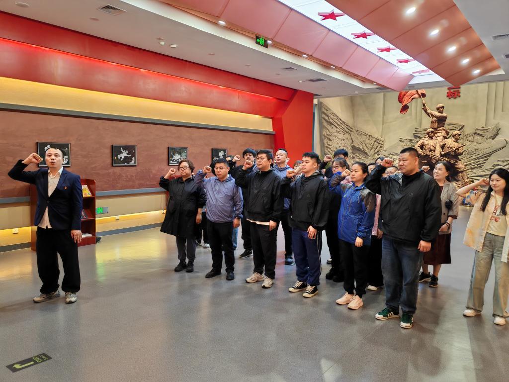 全体党员教师聆听了马玉祥同志在解放战争和抗美援朝战争中的英雄事迹。随着讲解员深情讲述,一件件斑驳的文物、一组组珍贵的影像、一段段震撼的解说,将大家的思绪带回那个战火纷飞的年代。通过观看丰富的图文资料、珍贵的历史文物以及生动的多媒体展示,进一步激发了党员教师对党、对人民的责任感、使命感。随后,党员教师面对鲜红的党旗,在公司党总支书记李明坤的带领下,全体党员重温了入党誓词。