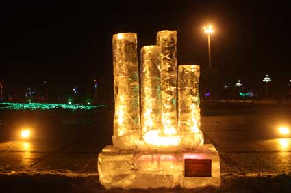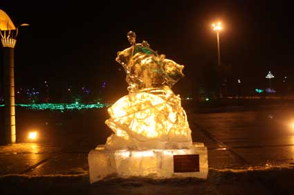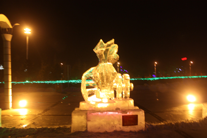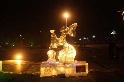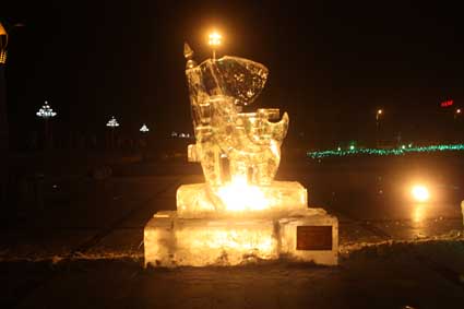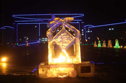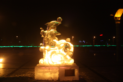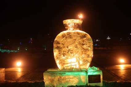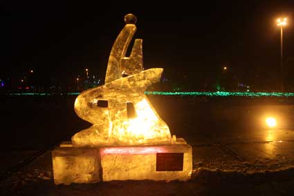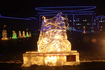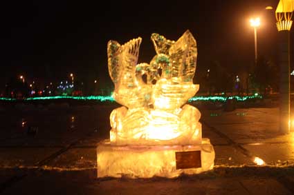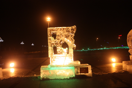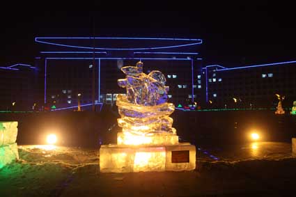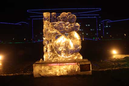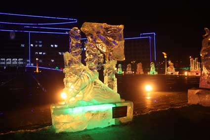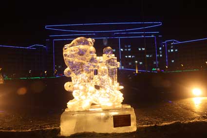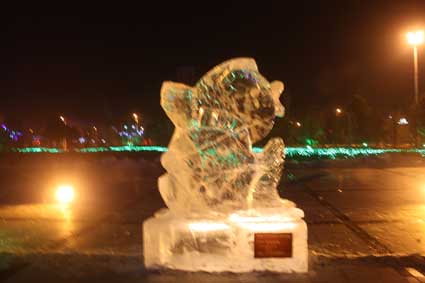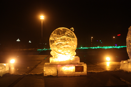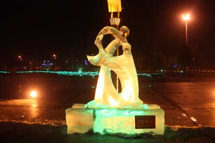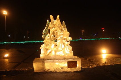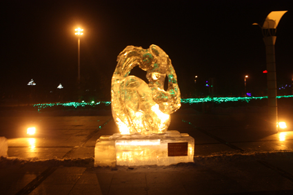 以下图片为部分冰雕作品夜间配灯效果图