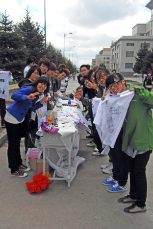 2010级装饰一班利用班费网购50件T恤和47个杯子等物品,全体同学经过为期一周的精心准备,对T恤和杯子等进行创意加工,发挥专业特色,以手绘的方式在T恤上和杯子上绘制丰富多彩的图案,包括卡通动漫以及艺术字等多种风格,通过义卖为新立小学留守儿童筹备资金。在义卖会上,全校师生纷纷签名支持该项活动,部分师生还自发捐款为留守儿童献爱心。同时,该活动也展示了伟德国际1949始于英国的专业特色,并将员工平时所学知识应用于实践。