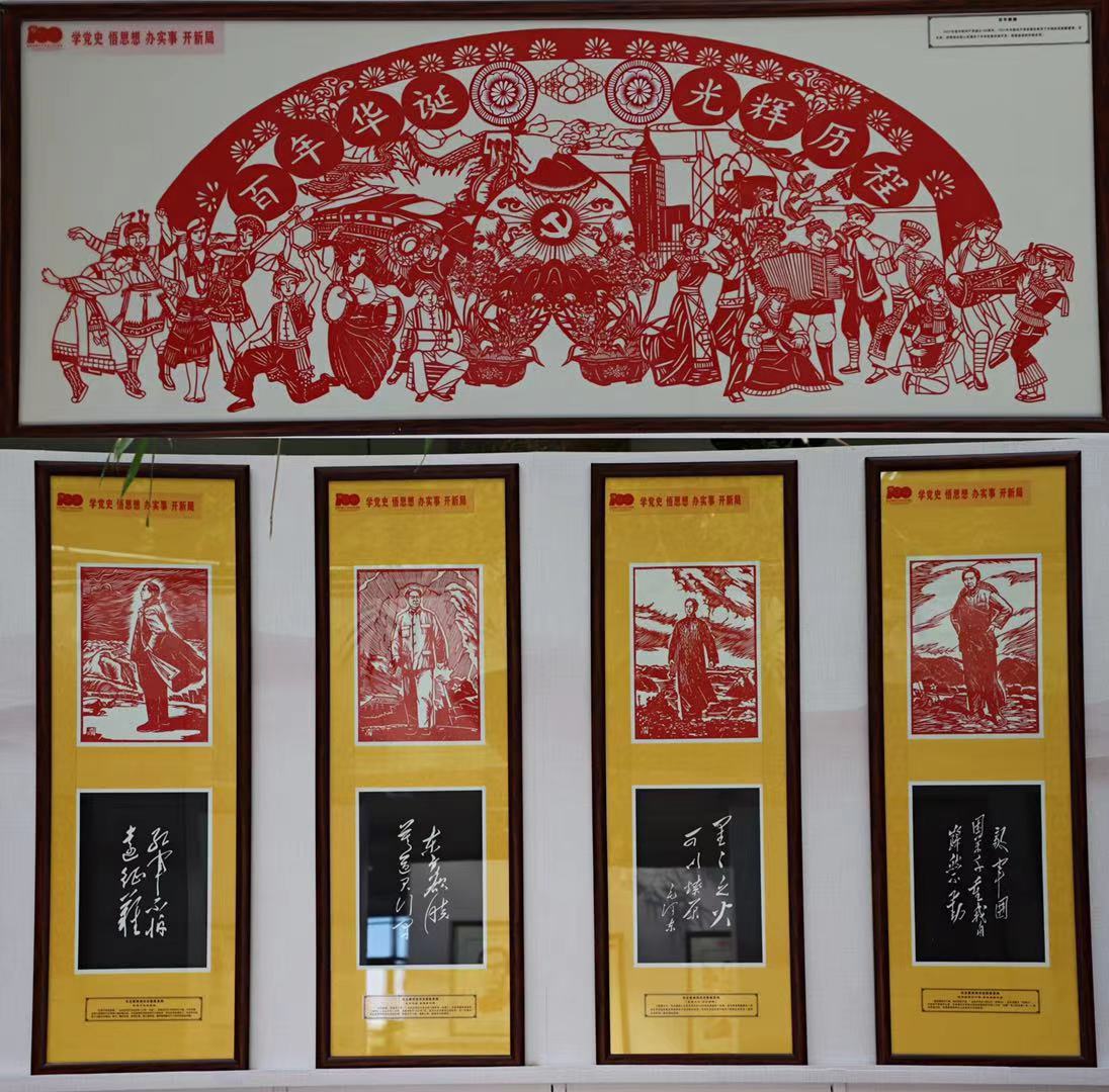 “公司开展党史学习教育,激发了我的创作灵感,一边学习英雄伟人、时代楷模的先进事迹,一边创作,用百幅剪纸作品庆祝党的百岁生日。”党员教师刘卓讲述了创作的背景故事。一幅幅作品栩栩如生,一段段英雄事迹浮现眼前。志之所趋,无远弗届;穷山距海,不能限也。伟人们“跨越百年”呈现了一堂生动的党课,公司领导驻足观看。