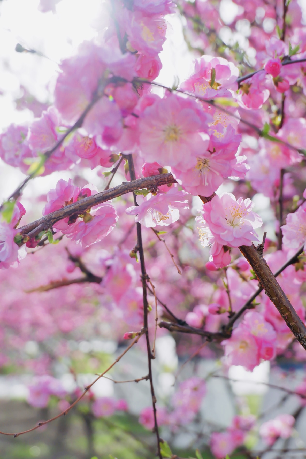 “桃红又见一年春”。我国自古以来就用桃花来象征春天。阳春三月,春光明媚,桃花"争开不待叶",盛开于枝头。它芳菲烂漫、妩媚鲜丽,如一片片红霞,与绿树婆娑的垂柳相衬映,形成了桃红柳绿。