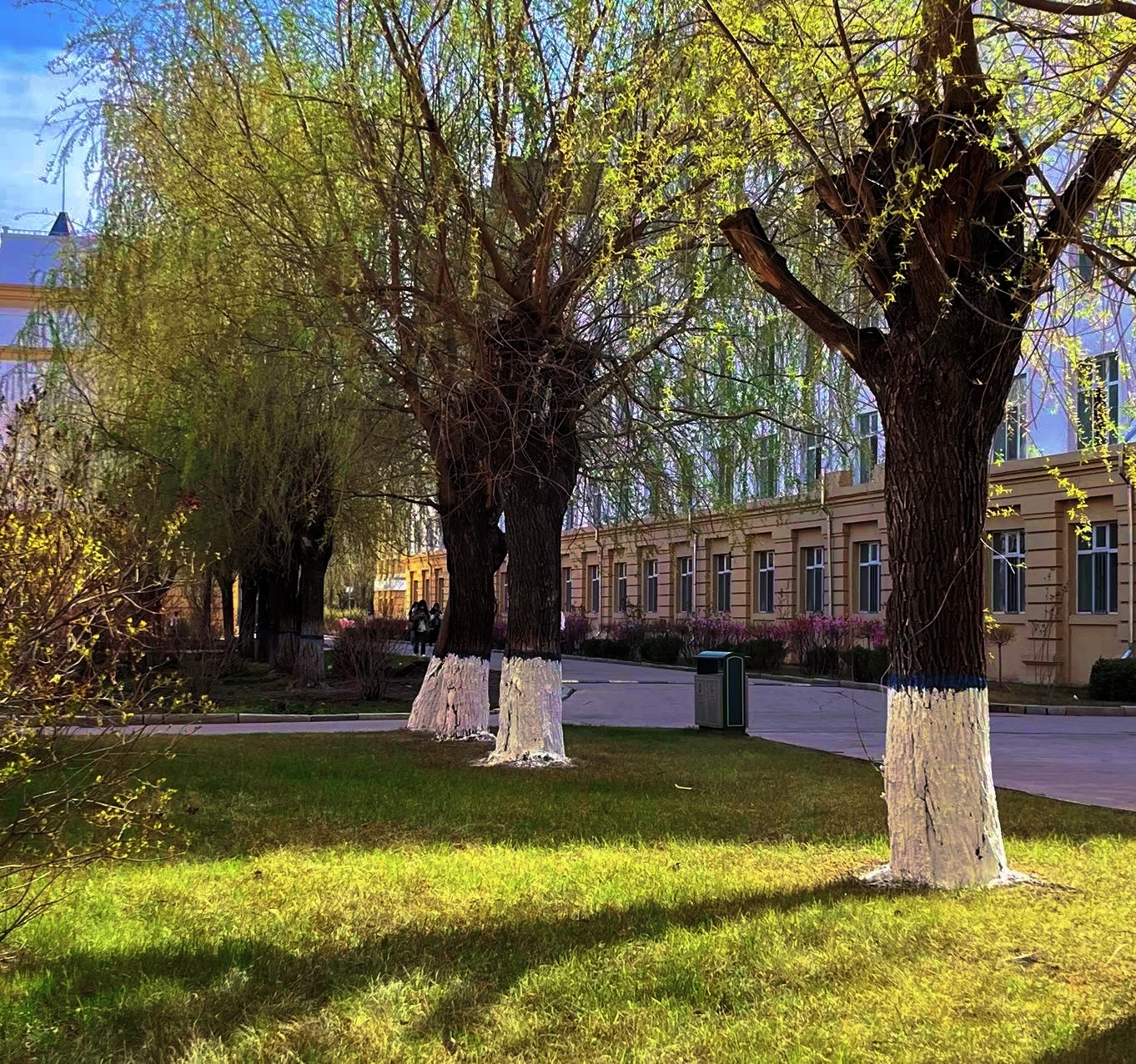 蓝天白云,晴空万里。草木如花,繁花似画。校园的春天如约而至,清晨的露珠沿着叶片划落。微风拂过是春的味道,阳光透过是春的温度。漫步在校园里,走过九思湖,看到的是水面波光粼粼,水里的鱼儿欢呼雀跃。水岸边绿草丛生,不经想起乐府古词所讲,“阳春二三月,草与水同色”。柳树伫立在路边,柳条随风摇曳,妩媚动人。