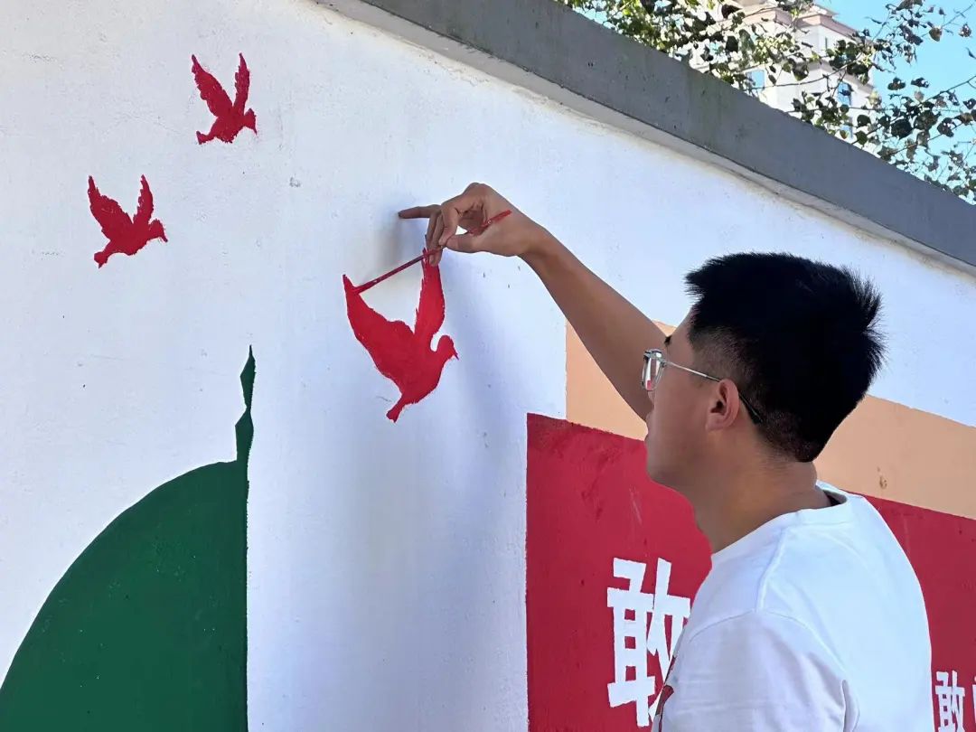 墙绘活动开始,公司闫英慧、欧阳景春两位专业老师带领20余名员工志愿者在秋风里起草稿、定色调、上颜色、调整画面……每一个步骤都严谨到位。在两位专业老师的指导下,员工志愿者们在投身志愿服务活动,为城市营造良好文明氛围的同时,发挥自己的专业优势,将理论融于实践,做到知行合一。
