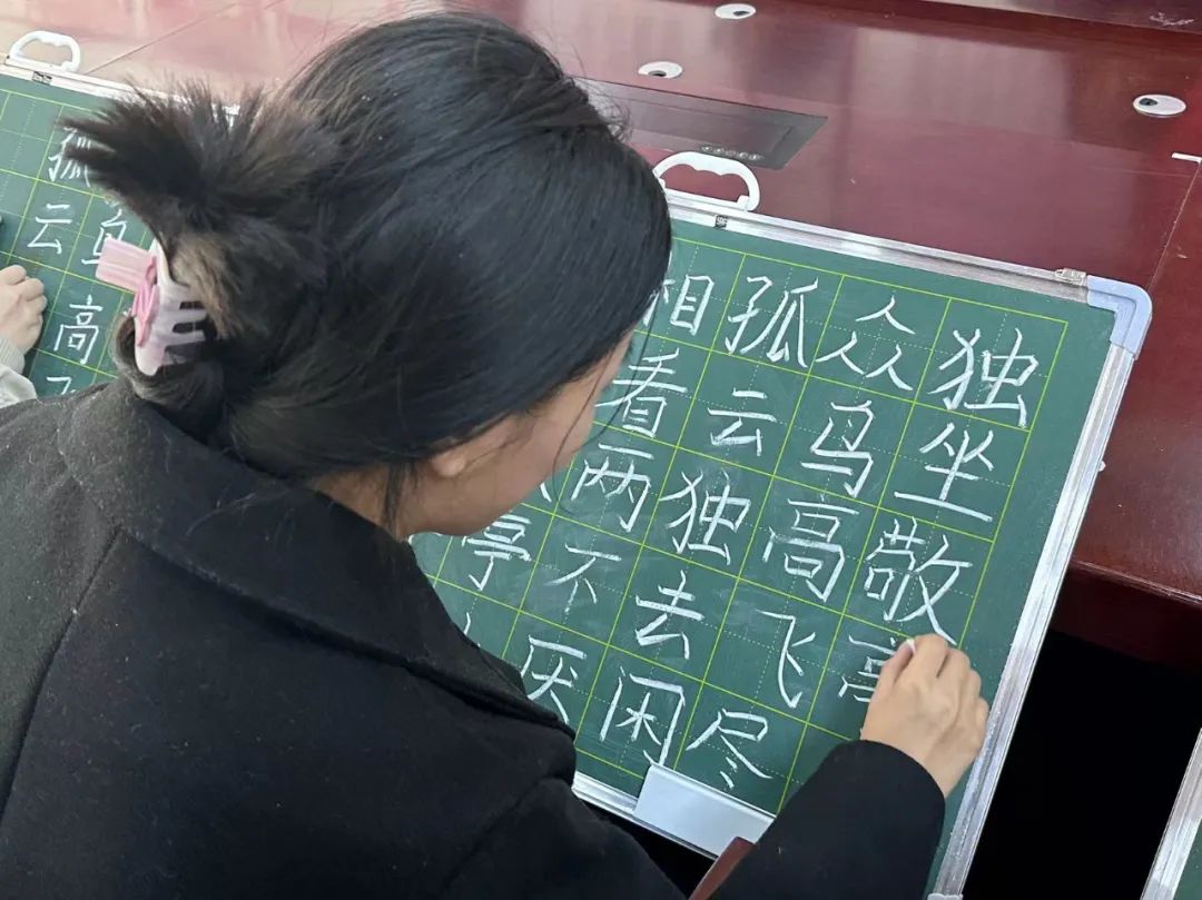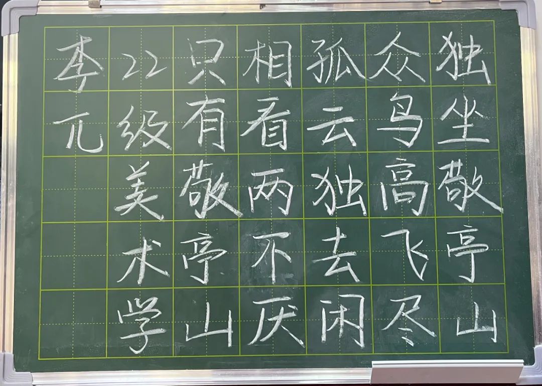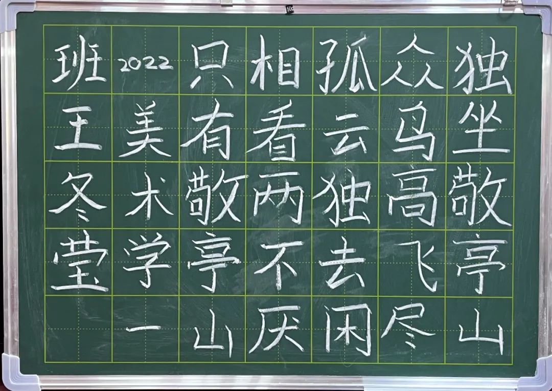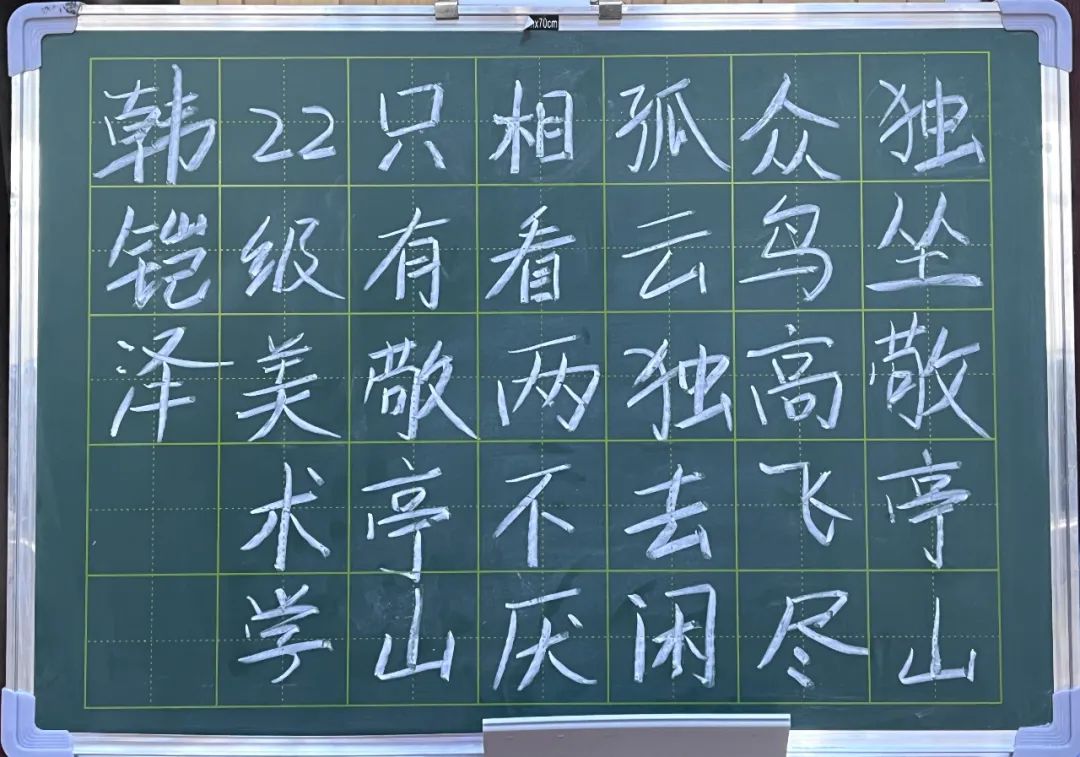 比赛开始,闫英慧老师首先说明本次比赛的粉笔字为“独坐敬亭山”,手抄报以教师节为主题。参赛同学纷纷做好赛前准备,开始自己的绘画内容。在比赛现场,参赛同学全神贯注,板书重点突出,层次分明;手抄报脉络清晰,结构完整。