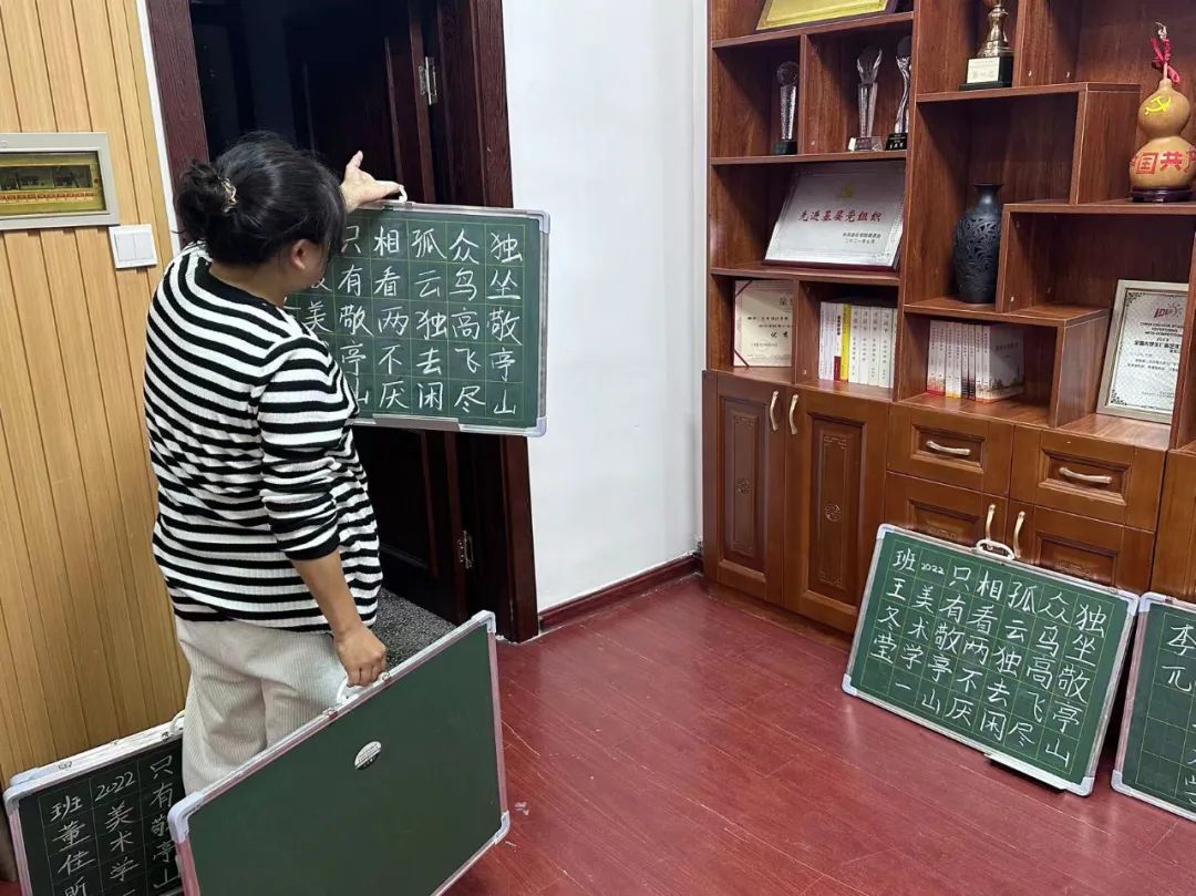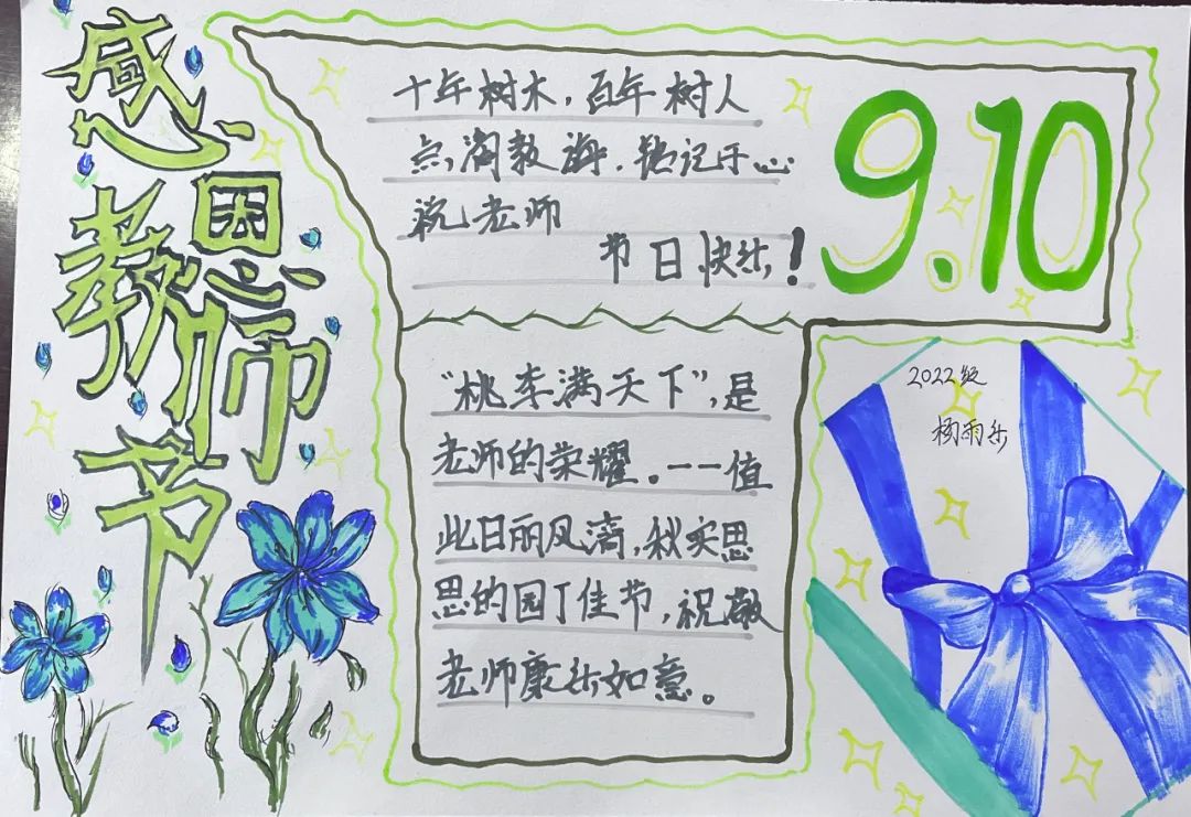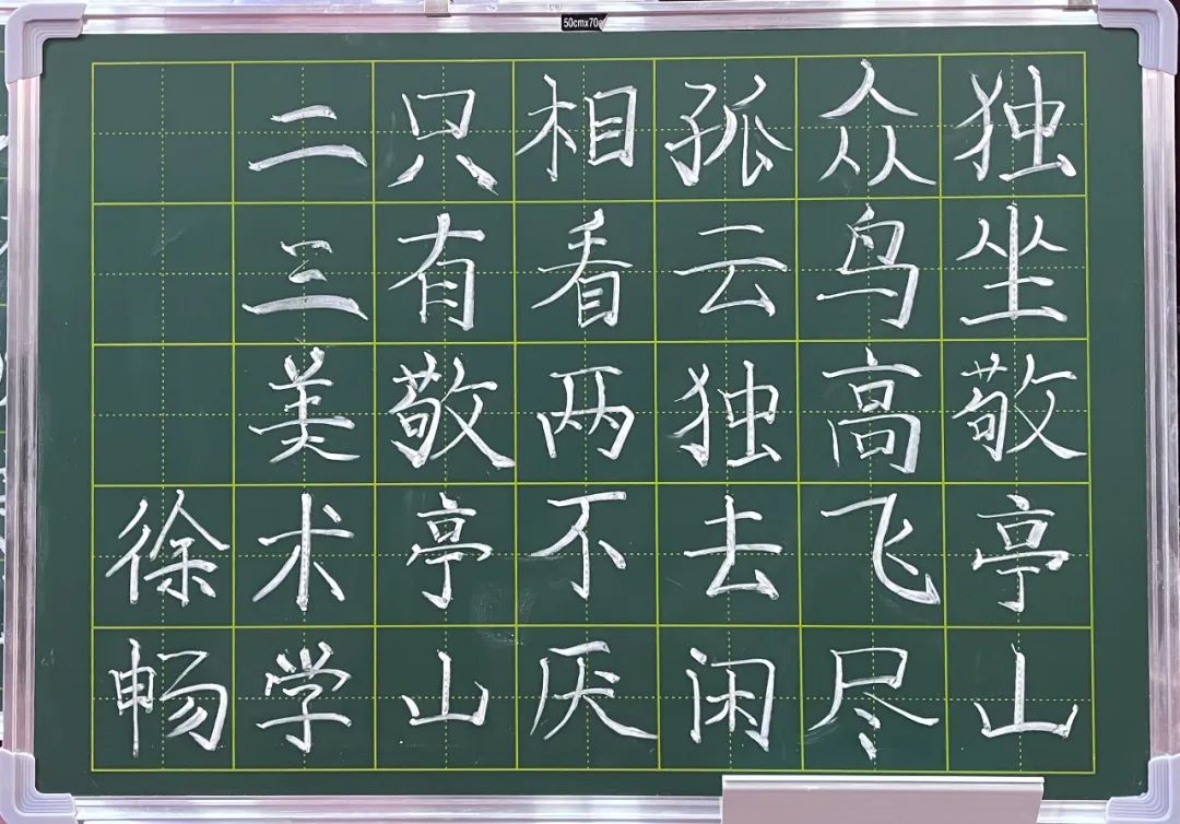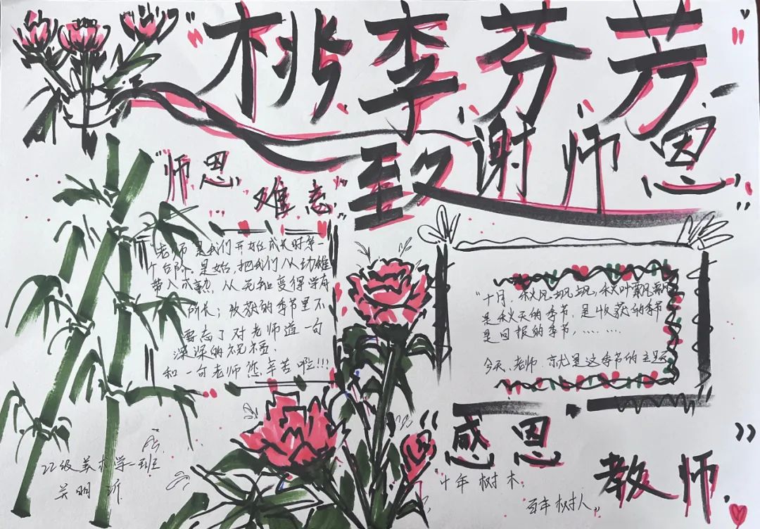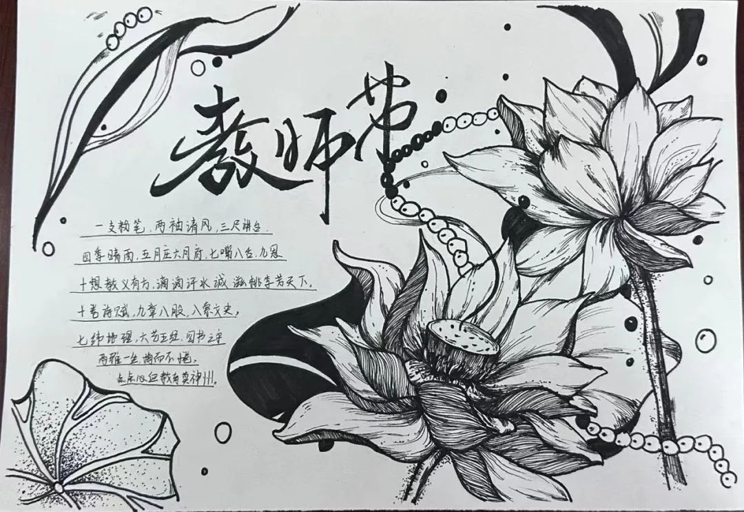 比赛开始,闫英慧老师首先说明本次比赛的粉笔字为“独坐敬亭山”,手抄报以教师节为主题。参赛同学纷纷做好赛前准备,开始自己的绘画内容。在比赛现场,参赛同学全神贯注,板书重点突出,层次分明;手抄报脉络清晰,结构完整。