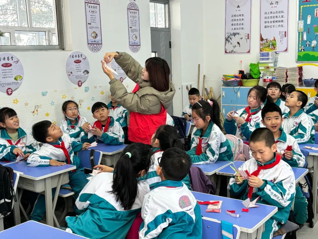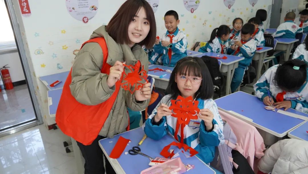 公司2021级员工代表郜飞雪和2022级员工刘哲一起向同学们普及剪纸文化知识及红色故事,并向同学们进行示范和指导,在剪纸实践环节中员工们积极互动,热情高涨,边学边做,充分表达了对剪纸课程的热爱。纸张翻飞,指尖灵动。一张张红纸在孩子们的手中上下飞舞,一幅幅生动的剪纸作品顺利完工。在课堂红色故事环节中同学们认真听讲积极踊跃的回答问题,通过公司员工对杨靖宇、赵一曼等东北抗联英雄生前英勇事迹的讲述,激发了同学们爱党爱国、崇德向善的爱国之情。此次课程的开展培养了同学们的逻辑思维和动手能力的同时增强了同学们的审美意识,使同学们更深入的了解到了红色精神并进一步培养了他们对传统手工艺的热爱与理解。