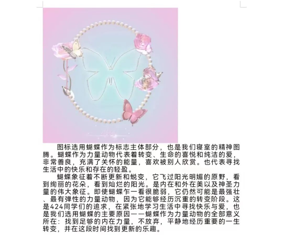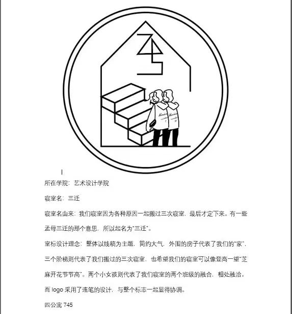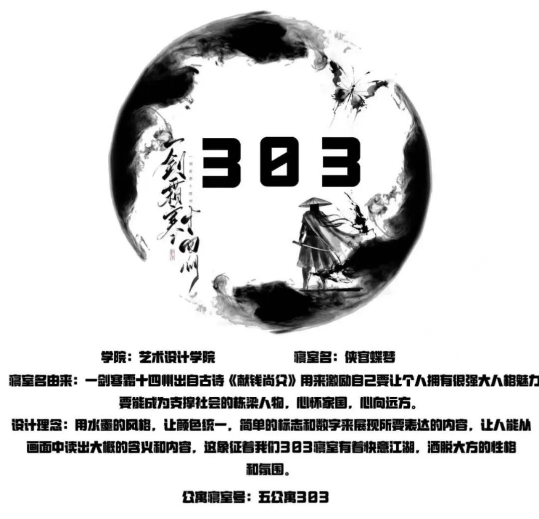 此次活动同学们以寝室为单位,团结协作,发挥专业能力,将自己对寝室生活的热爱融入到室标的设计中。他们或以古诗为灵感,采用水墨风格,表达侠义大方,快意江湖的理想;或是根据寝室搬寝经历,采用简约连笔线条设计,来表达登高望远,芝麻开花节节高的美好愿景;更有采用蝴蝶元素,表达不断更新、蜕变、寻找的寝室文化追求。每一个室标都承载着同学们的梦想与情感,是他们共同生活的象征。