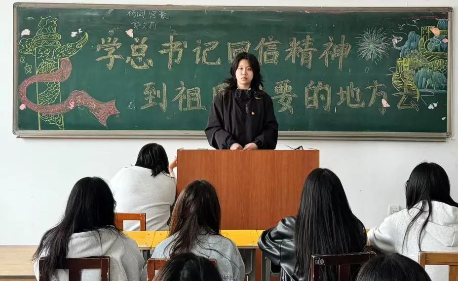 活动伊始,各班团支书首先向同学们介绍了谢依特小学戍边支教西部计划志愿者服务队的事迹以及习近平总书记回信的背景和内容。总书记在回信中强调,希望广大青年坚定理想信念,厚植家国情怀,练就过硬本领,发扬奋斗精神,到祖国和人民最需要的地方发光发热,为中国式现代化建设贡献青春力量。