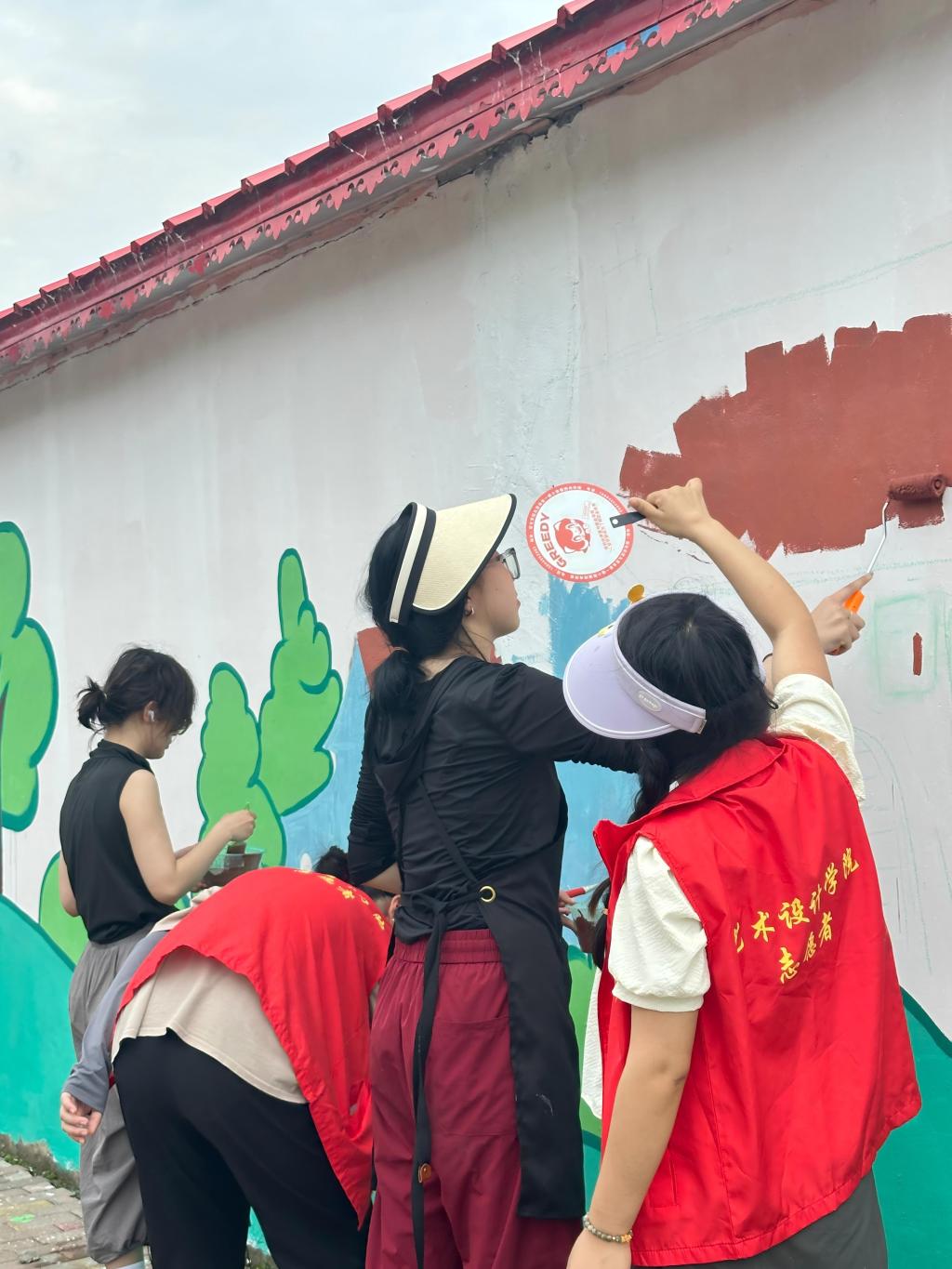 此次墙绘志愿服务活动受到了同乐镇同发村、同庆村村民们的好评,墙绘尾声,志愿者同学们发起“乡村美学共创”:递颜料笔给村民,邀请一起添图案。一直陪伴志愿服务团队的同庆村老党员高大爷在志愿者的指导下接过画笔,也在墙绘上留下了自己的“画作”。此次志愿服务活动在改善村容村貌的同时,也为伟德国际1949始于英国的师生们提供发挥技能优势、践行社会服务的平台。