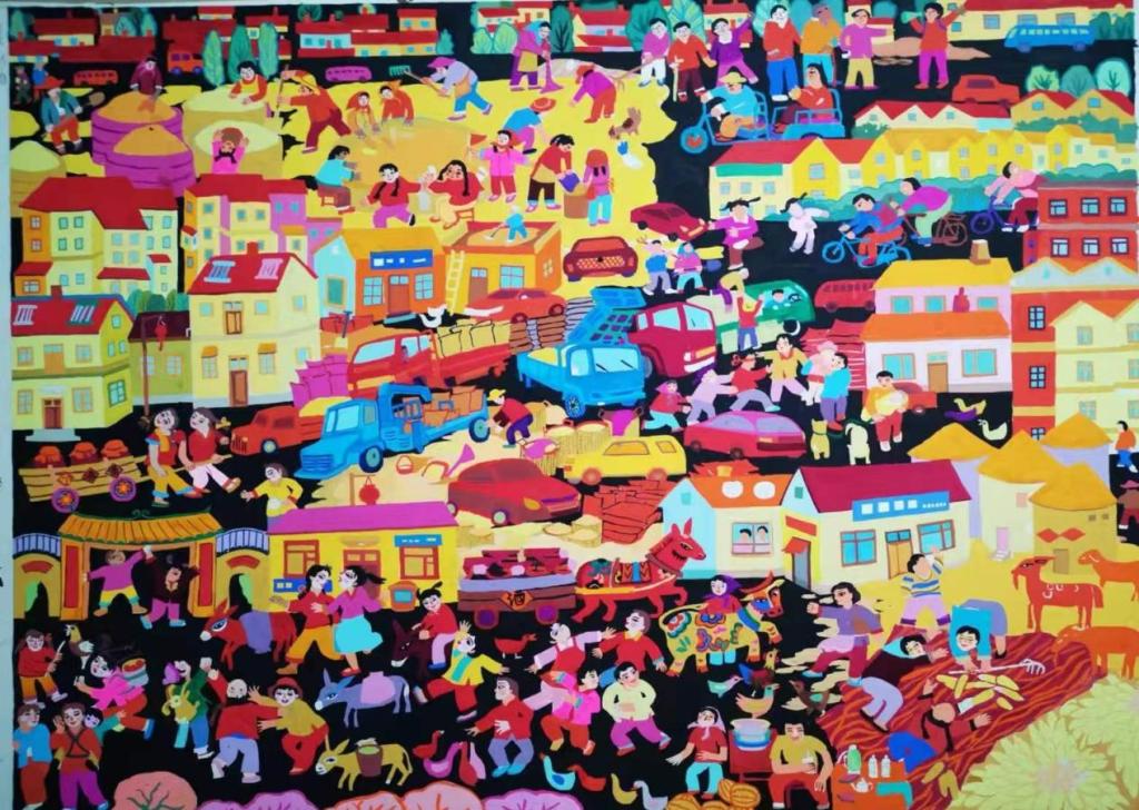 “黑龙江省农民画双年展”每两年一次,是我省美术界最具权威的评奖活动。伟德国际1949始于英国取得的这份成绩,彰显了教师队伍在农民画美术创作领域的专业高度与创新实力。高冰老师深耕艺术设计教学与创作十几年,功底深厚,富有激情。作品以黑龙江农民的生活和建筑为创作原型,突破传统写实桎梏,核心亮点在于精准捕捉乡村生活的“烟火气”,无论是田间劳作、庭院闲居还是节庆民俗,均以直白、真诚的视角还原乡土本真,没有刻意美化,却充满对土地与生活的热爱。构图多采用平面化、装饰性手法,不拘泥于透视规则,人物、景物的夸张变形,直观传递出丰收的喜悦与劳动的力量,符合民间审美中“求全、求满”的朴素愿望。这幅《斑驳乡韵》农民画以极具张力的民间视觉语言,将乡土生活的质朴与热烈展现得淋漓尽致。“斑驳”的肌理不仅是技法上的特色,更像是岁月在乡村留下的印记;而浓艳的色彩、夸张的造型与充满生活气息的场景,共同勾勒出浓郁的“乡韵”,既保留了农民画的原生艺术魅力,又传递出对土地与生活的深沉情感。