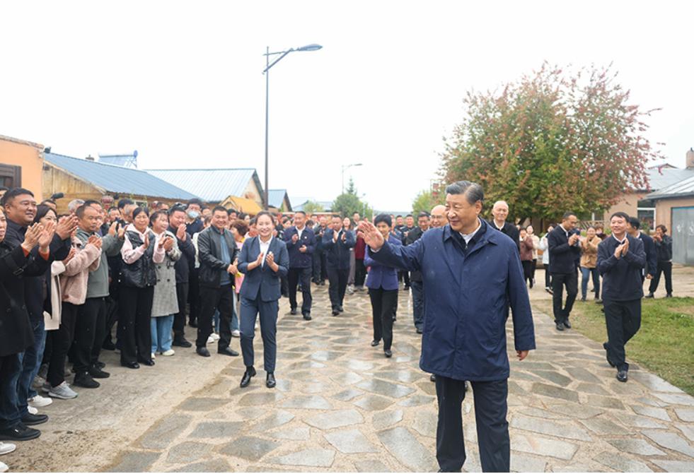 9月6日至8日,中共中央总书记、国家主席、中央军委主席习近平在黑龙江考察。这是6日下午,习近平在大兴安岭地区漠河市北极村考察时,同当地群众亲切交流。