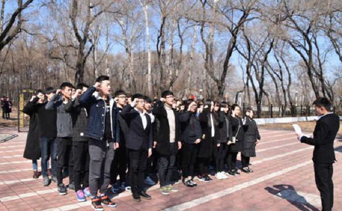 2017年4月1日中午,优秀党员、优秀积极分子、员工干部及班长支书员等65余名青年团员一路迎阳光、踏未化的积水薄雪,步行来到绥化市人民公园烈士纪念碑下。