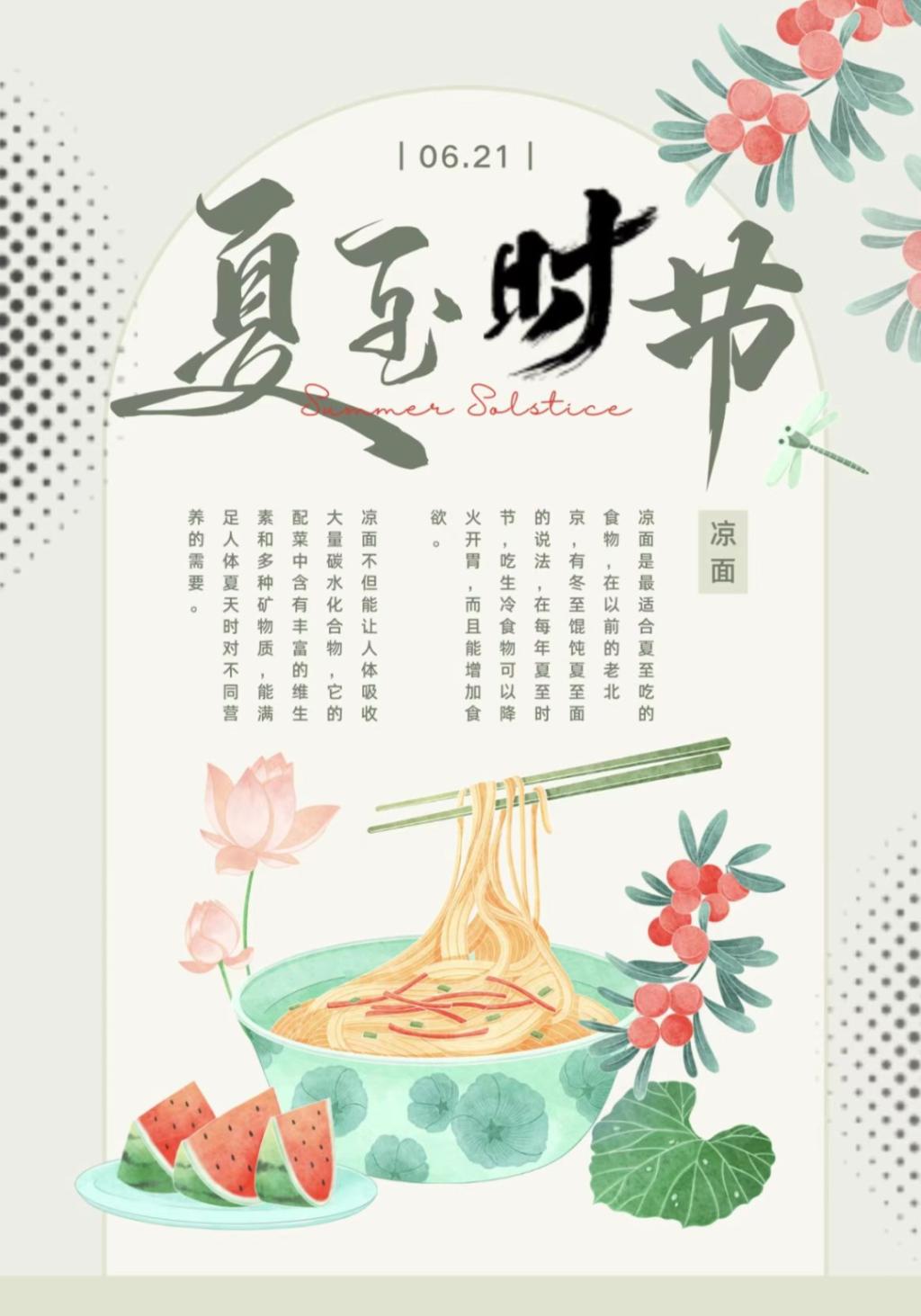 此次夏至海报征集活动既为中国传统文化二十四节气注入了崭新的色彩,又形象的表现出节气的独特魅力,让同学们深刻领悟到夏至的特殊意义,进一步感受到二十四节气的独特内涵。