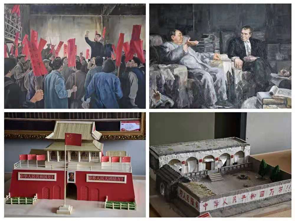 此次艺术展得到全校广大师生的积极响应和热情参与,共展出作品100件。参展作品形式多样,内容丰富,立意深刻,主题鲜明,皆以中共党史题材为创作素材,包括书法、绘画、剪纸、秸杆画、建筑模型等形式,作品紧紧围绕党史学习教育主题,紧扣时代脉搏,从不同角度讴歌党在革命、建设、改革、复兴事业中的丰功伟绩。