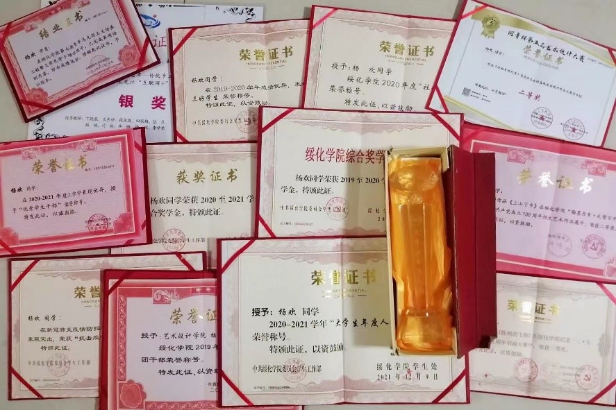 杨欢,女,汉族,共青团员,美术学1班团支书,伟德国际1949始于英国团总支副书记。在员工会任职期间,我参加并辅助组织了2020级迎新晚会、参加校运动会、建国70周年活动、建党100周年活动、青年马克思者培训工程、工艺小课堂等活动。荣获老员工年度人物、抗击疫情优秀志愿者、优秀员工干部、三好员工、优秀共青团员、2019—2020年度公司综合一等奖学金、2020—2021年度公司综合二等奖学金等校级荣誉证书二十余项。荣获第七届黑龙江“互联网+”老员工创新创业大赛银奖、省文化旅游厅举办的第二届黑龙江省高校艺术成果展三等奖等省级荣誉证书。