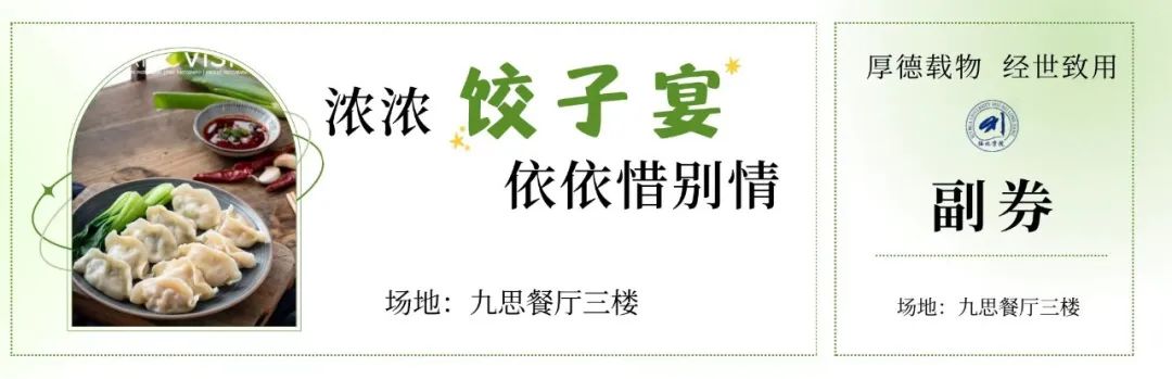 饺子券的背面内容相对简单一些,主要是对毕业生们的寄语,透露着祝福和鼓励,希望毕业生们离开母校的怀抱,依然能够精彩万分、熠熠生辉、越来越好,并附带一份做好的饺子场景,寓意着无论何时,母校都会翘首以盼,准备好一份热腾腾的饭菜,等待着各位学子的归来。