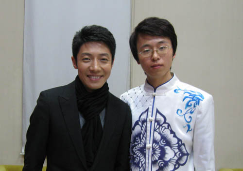 刘卓在接受中央电视台采访时与主持人撒贝宁合影。(刘卓本人提供)