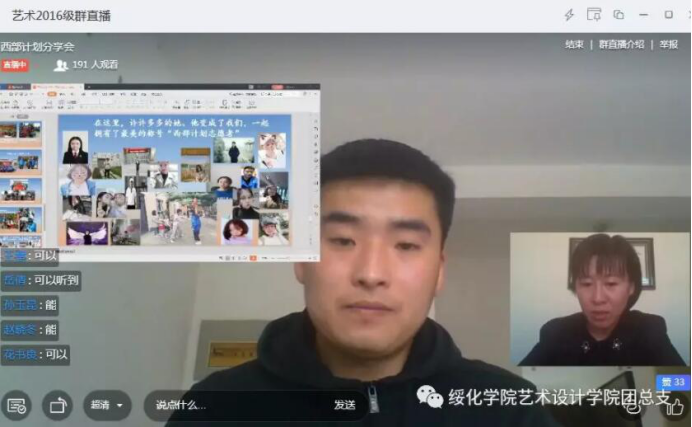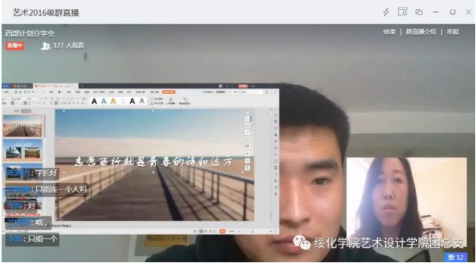 公司党总支书记吕霞对此次西部计划分享会给予充分肯定,并向2020届毕业生提出了三点希望,一是希望同学们打开思路、转变观念,树立“先就业再择业”的就业观;二是希望同学们充分利用公司就业平台、线上招聘会和国家政策等,多渠道就业;三是希望同学们珍惜宝贵年华,坚持理想,脚踏实地。