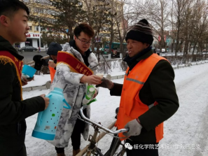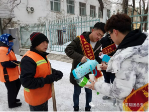 老员工志愿者为环卫工人送一杯热水,在如此严寒的天气里,为了给在路上随处可见的环卫工人驱寒送暖,让他们感受到社会的温暖,公司于三月十三日举办了老员工学雷锋活动:为环卫工人送一杯热水。三月的绥化天气依旧很冷,出行在外的路上,经常会看到清洁城市垃圾的环卫工人在辛勤劳作,他们只是这个城市中的普通一员,却干着不平凡的工作,起早晚归,十几年如一日。