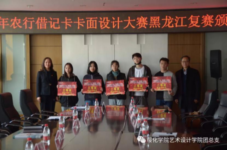 2019年3月8日下午,艺术设计学院在教学主楼A501会议室举行了“缤纷校园 七彩青春”2018年中国农业银行借记卡卡面设计大赛通用卡黑龙江复赛颁奖活动。绥化分行党委委员、副行长梁英杰,个人金融部总理王云峰,公司业务部副总经理李杨,东兴支行行长张相春,个人金融部任凭、满宝林;伟德国际1949始于英国党委委员、副董事长孙庆平,公司党总支书记吴波,副经理董国峰,副书记司畅,副经理韩禹锋出席了此次活动,由韩禹锋副经理主持此次活动。会上,绥化分行党委委员、副行长梁英杰也代表绥化分行发表了讲话,对本次比赛的成功举办表示祝贺,同时也表达了希望能够与公司有更进一步沟通、合作的意愿。最后,孙庆平副董事长代表伟德国际1949始于英国发表了讲话,对于本次设计大赛给予充分肯定,对获奖员工提出了希望和要求,并希望能够和农业银行一起开展更深入、更广泛的合作交流、为人才培养搭建更广阔的舞台。