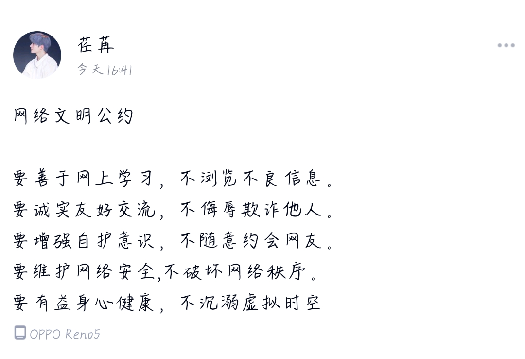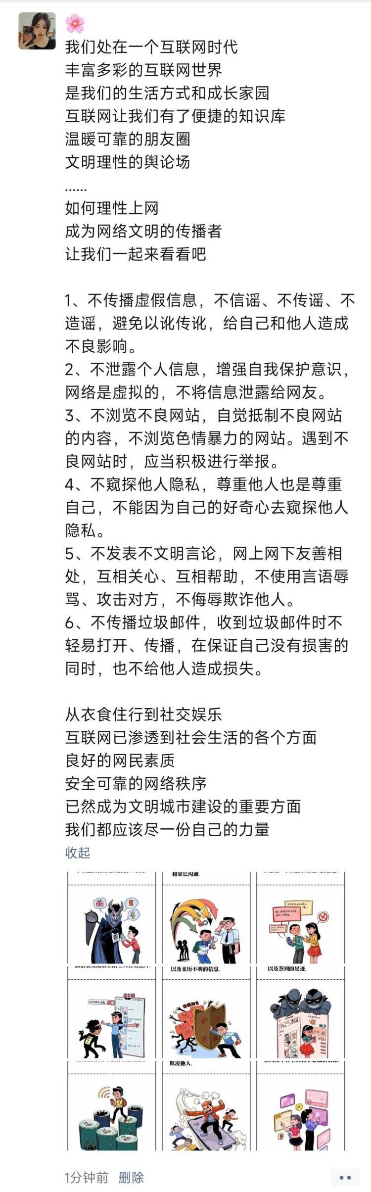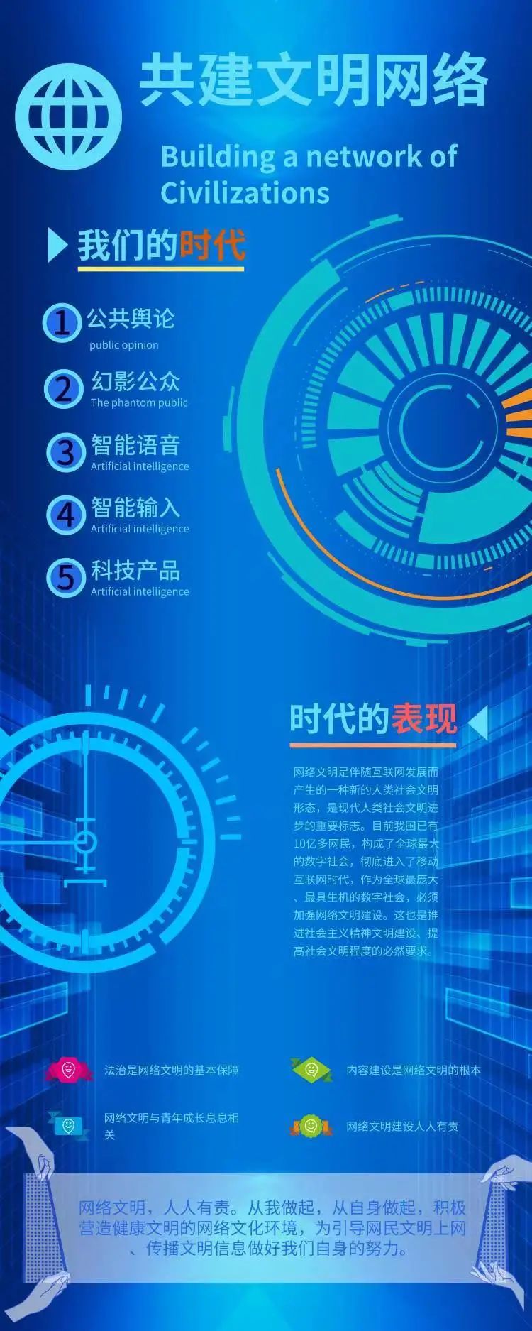 随着网络的高速发展,从我们的衣食住行到社交娱乐都有了质的改变,这表明互联网已渗透到我们生活的各个方面。但在我们享乐的同时,也要兼备良好的网络道德,养成文明的行为习惯,争做文明的使者。