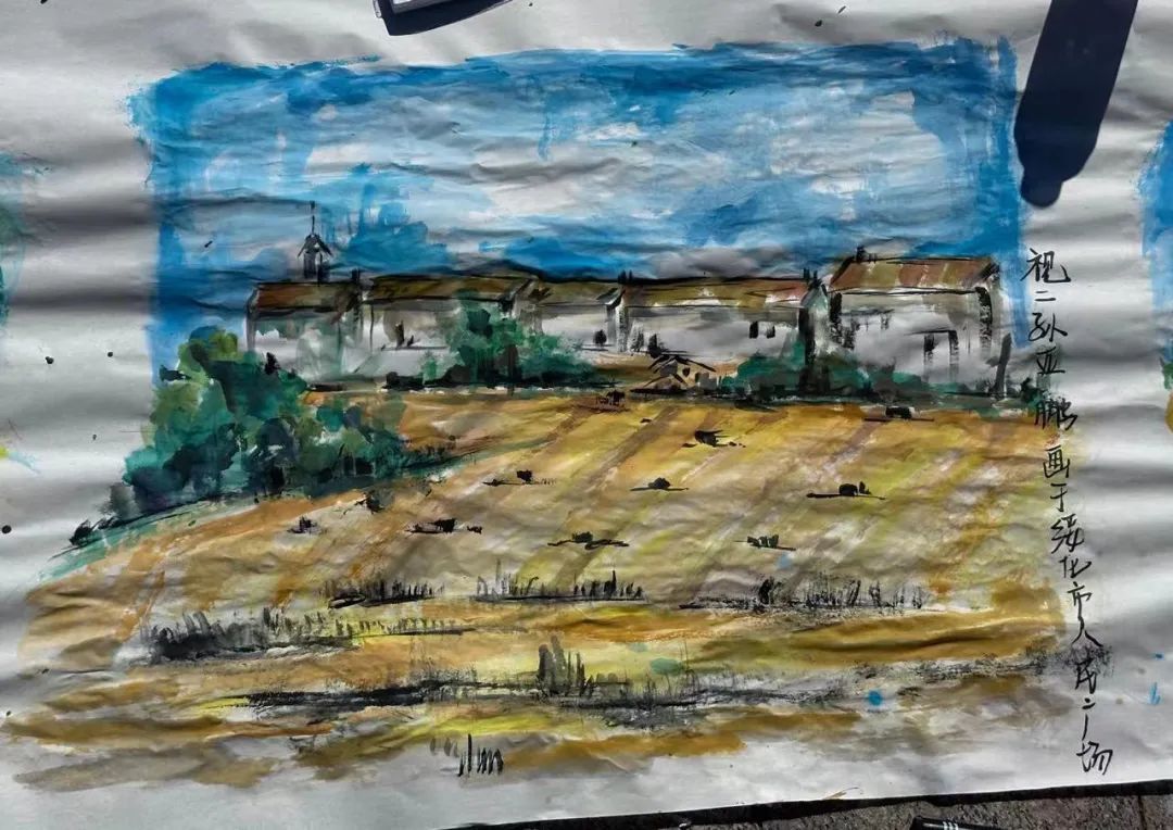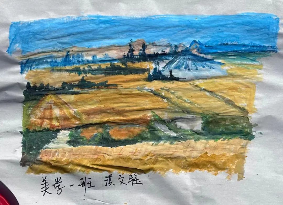 活动开始前,主办方为同学们准备好了绘画工具。活动开始,同学们找好各自位置,闫英慧老师给同学们分配好绘画任务并在专业的角度为同学们做出指导,并要求紧扣“丰收”主题进行绘画。