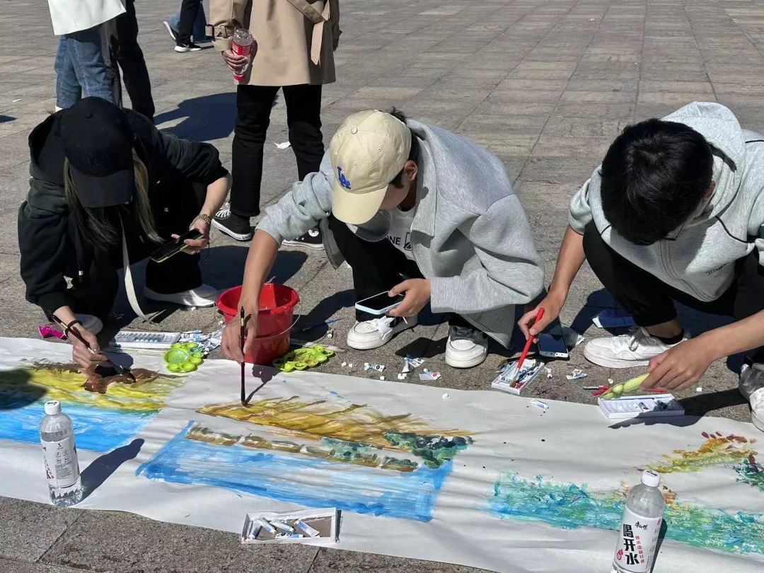 接着,同学们以两到三人一组,在百米长卷上开始了以“丰收”为主题的绘画,绘画过程中,也吸引了许多市民驻足观看,他们对绘制的高粱地、丰收场景等图案和志愿者们的画技给予了高度肯定,主办方负责人对公司学子的表现也给予了高度称赞。