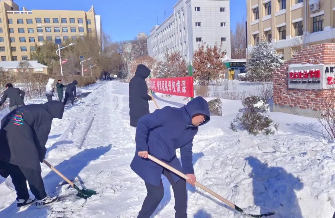 本次师生联合扫雪活动圆满结束!此次活动仅加强了师生友好交流,而且进一步培养了同学们吃苦耐劳能力,优化了良好的院风传统。