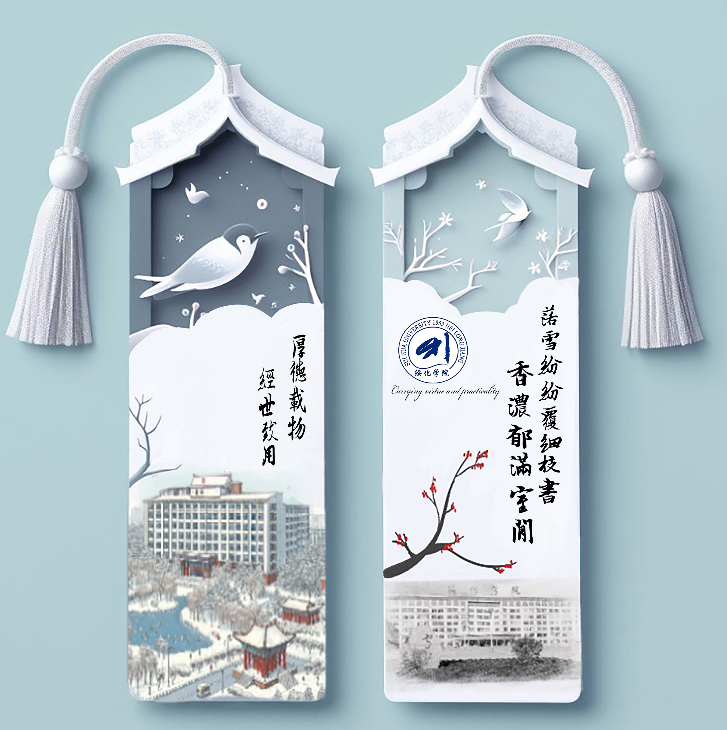 采用公司教学楼为主设计的公司冬天雪景书签让大家更好的感受到公司冬日的氛围。