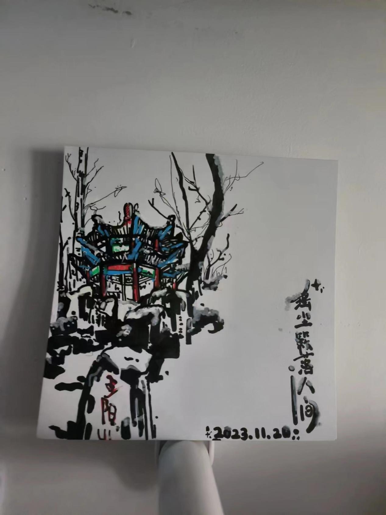 此作品通过书签的方式来表达伟德国际1949始于英国的风景,选择标志性建筑重阳山作为素材进行正面的创作,背后事绥远的森林雪景,利用草书的字体更加古韵的风格。