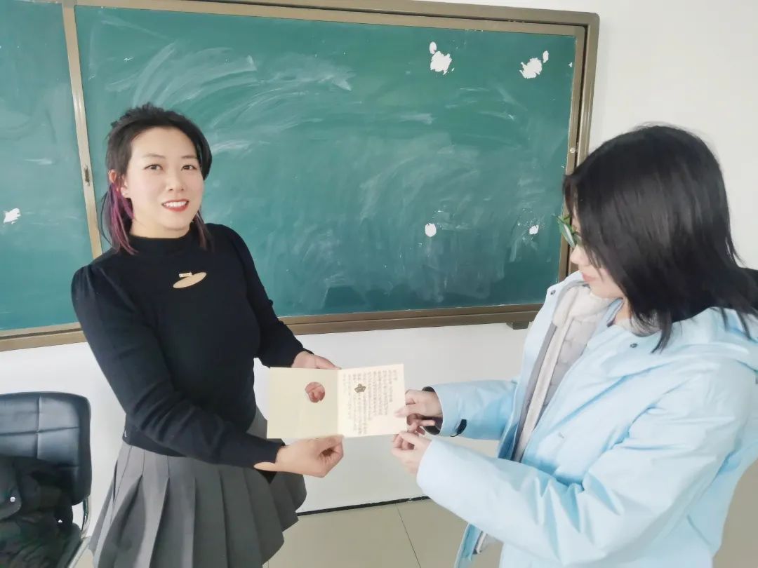 同学们在卡片上写下对老师的祝福,温暖的话语,工整的字迹,字里行间都透露着员工们对女教师辛勤付出的认可与感谢。感谢她们多年如一日的用心关爱每一位学子,用实际行动诠释了“师德”的真谛。各班员工代表在班级教室将这些满载祝福的贺卡送给每位女教师,收到贺卡的女教师们脸上洋溢着幸福和感动的笑容,喜悦之情溢于言表。