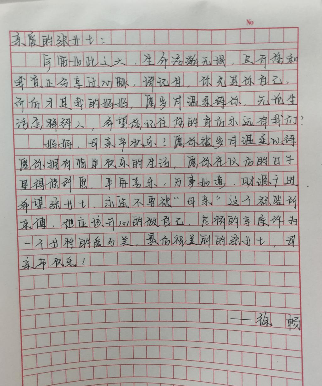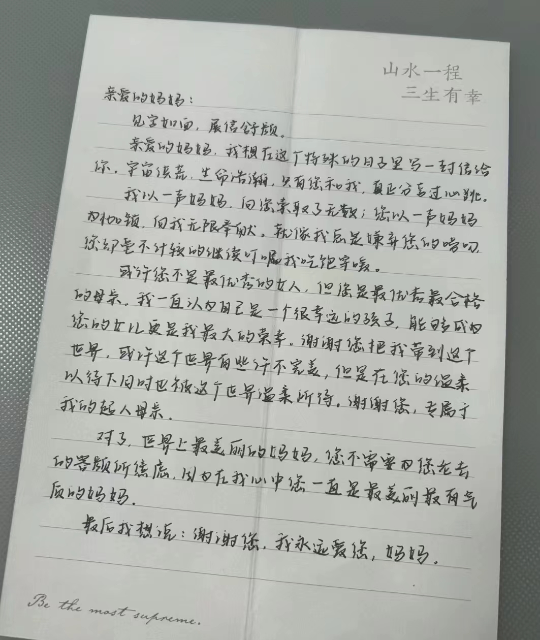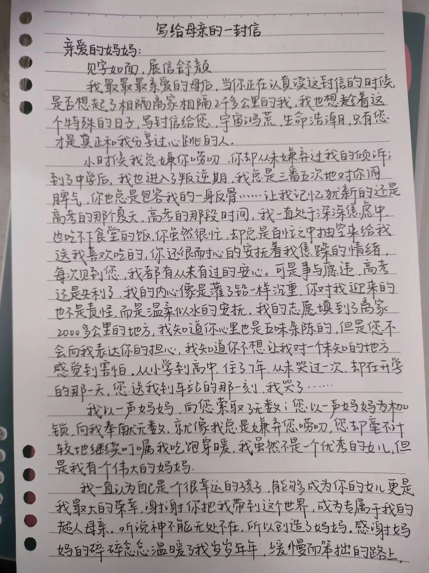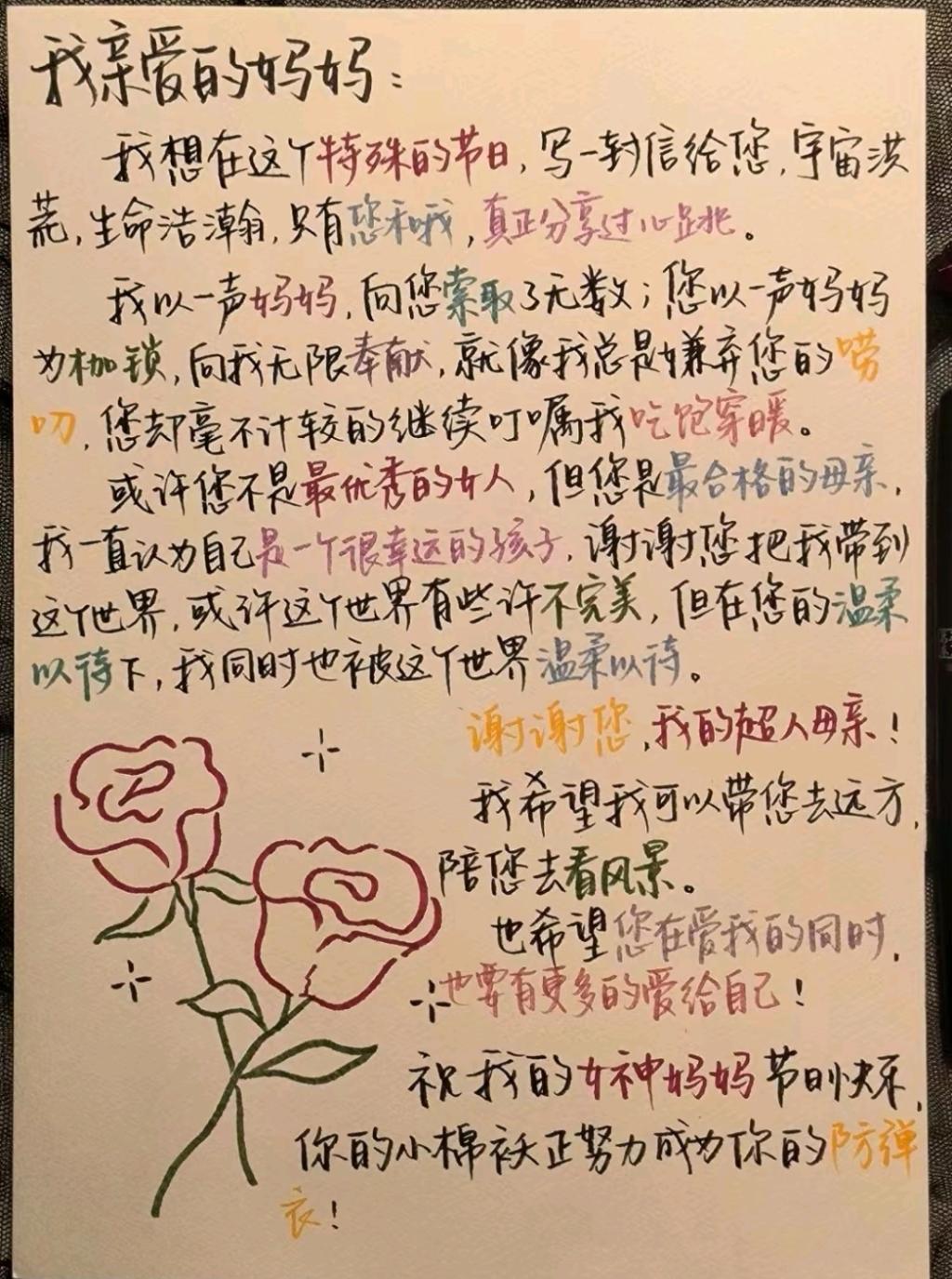 希望妈妈可以永远陪伴我,当然也要有自己的生活。