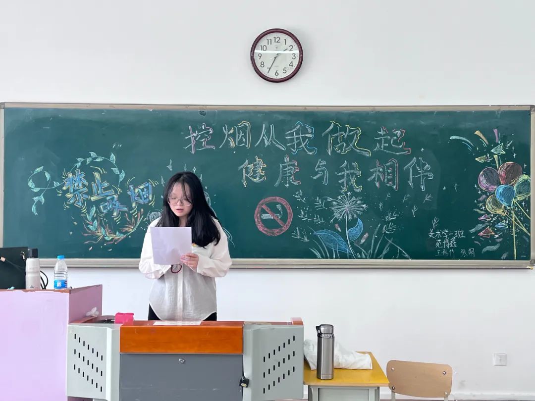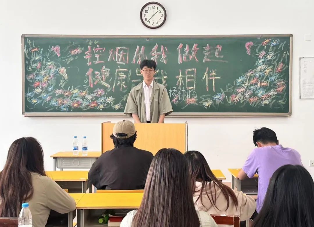 活动开始,各班级负责人紧密围绕“禁烟、控烟、戒烟”的主题内容,通过讲解吸烟对健康的危害以及烟草相关知识,让同学们了解到吸烟对健康的严重危害,同时通过心得分享、座谈交流、观看禁烟专题教育片等形式,并剖析了烟草对身体的危害、对青年成长的危害以及二手烟对人体造成的危害,同时结合现实生活中的一些案例,让同学们进一步加深了吸烟对健康所造成的危害,增强了同学们远离烟草、珍爱生命的意识。