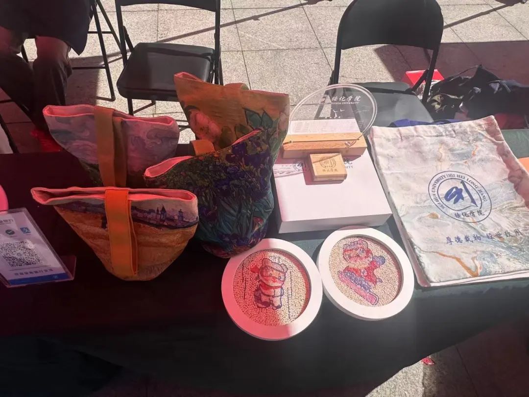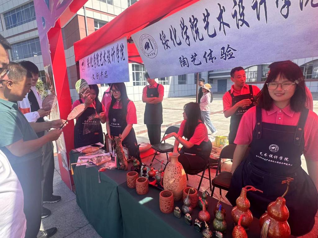 公司师生充分发挥专业优势,将传统非遗漆艺技术与现代时尚结合,创作出艺术价值与实用价值并存的蚕丝漆扇、帆布包。粮食画、葫芦画以其独特的创意以及精巧的制作手法,展现出自然的馈赠与人类创造力的和谐统一。陶艺雕刻作品和剪纸作品以中华民族传统文化为驱动,从优化制作技艺,创新设计思路的角度出发,将传统文化的魅力进行了淋漓尽致的表达。此外,为宣传倡导此次展览的互动性,公司还特别设置了棉花糖制作展位,为新生和家长带来了甜蜜。