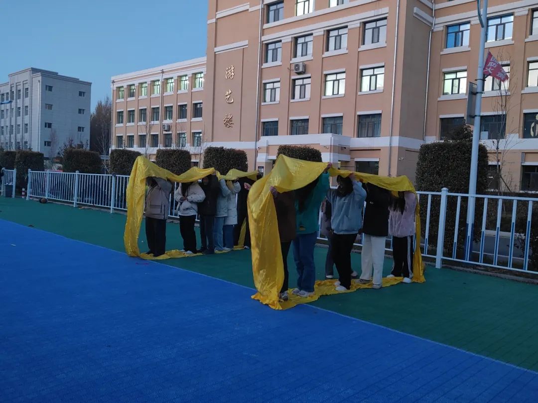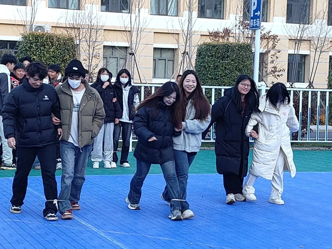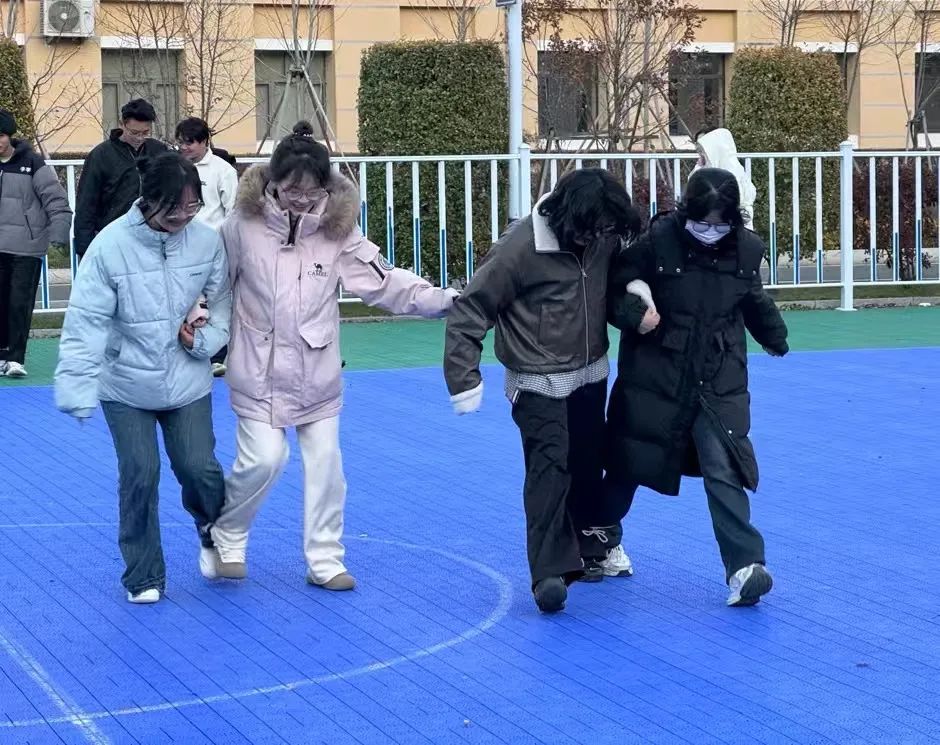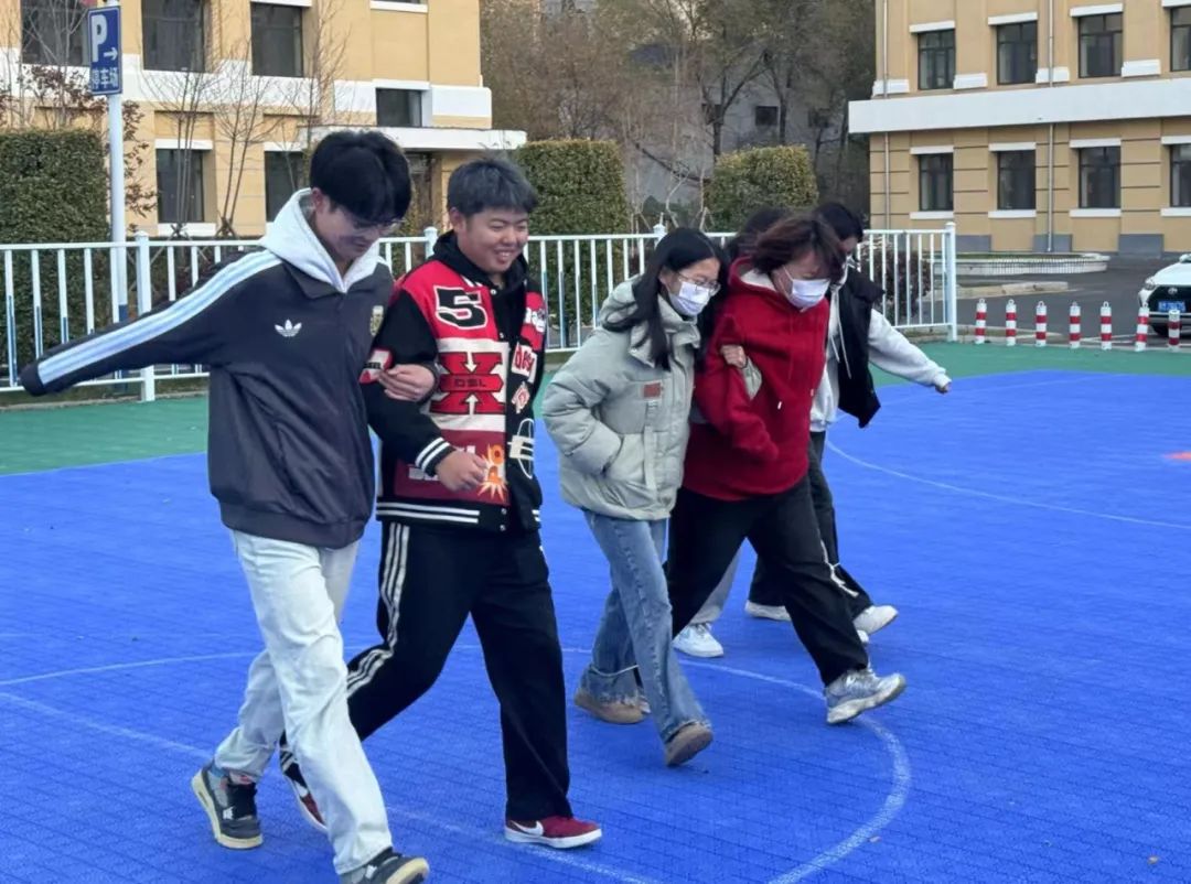 同学们肩并肩,腿绑腿