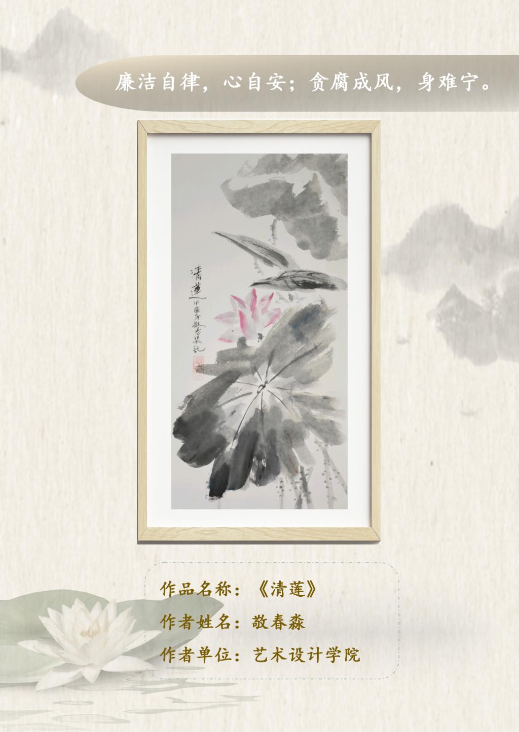 本次展览面向全校公开征稿,共收到100余件艺术作品,经初评、复评最终评选出参展作品45件,其中一等奖10人、二等奖15人、三等奖20人。展出作品涵盖了中国画,油画,书法,剪纸等多种艺术表现形式,作品紧扣廉政主题,多层次、多角度的展现了廉为政本,廉以立身,持廉守正的展览氛围。此次展览旨在以一幅幅生动的画面,无声的诉说廉洁自律的故事,使公司更加坚持不懈的加强党风廉政建设,以实际行动践行廉洁自律的要求;意在强化廉洁意识,传递清正廉洁的价值观。