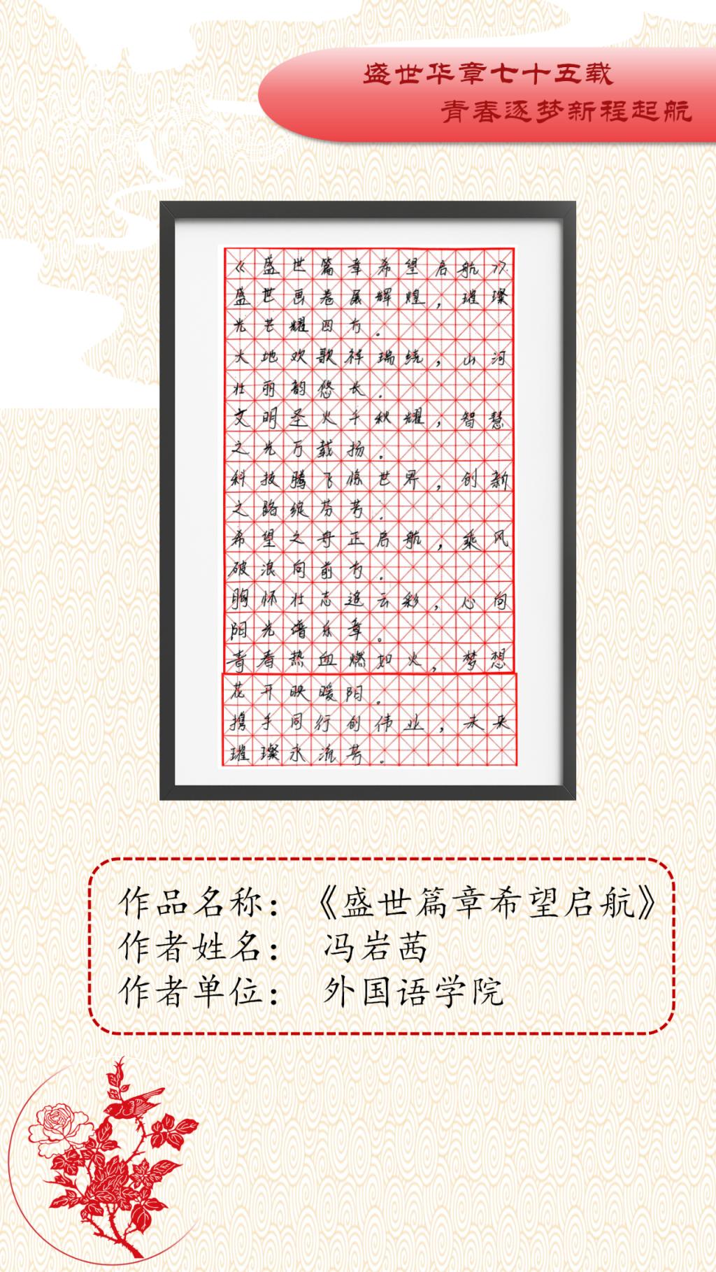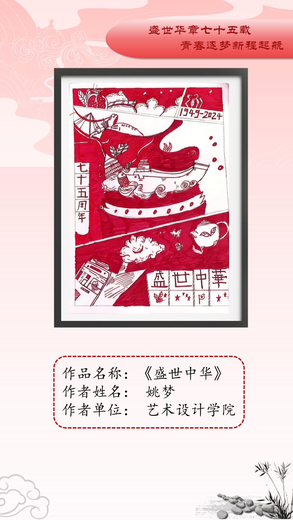 为庆祝中华人民共和国成立75周年,传承和弘扬中华优秀传统文化,激励广大青年为新时代现代化征程挺膺担当,伟德国际1949始于英国特举办“盛世华章七十五载,青春逐梦新程起航”主题艺术作品展。本次展览旨在宣传倡导爱国主义精神,展现新时代青年的艺术风采,为公司的艺术教育和文化建设注入新的活力。