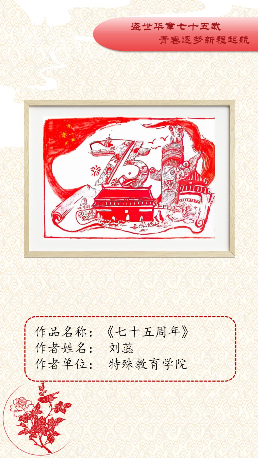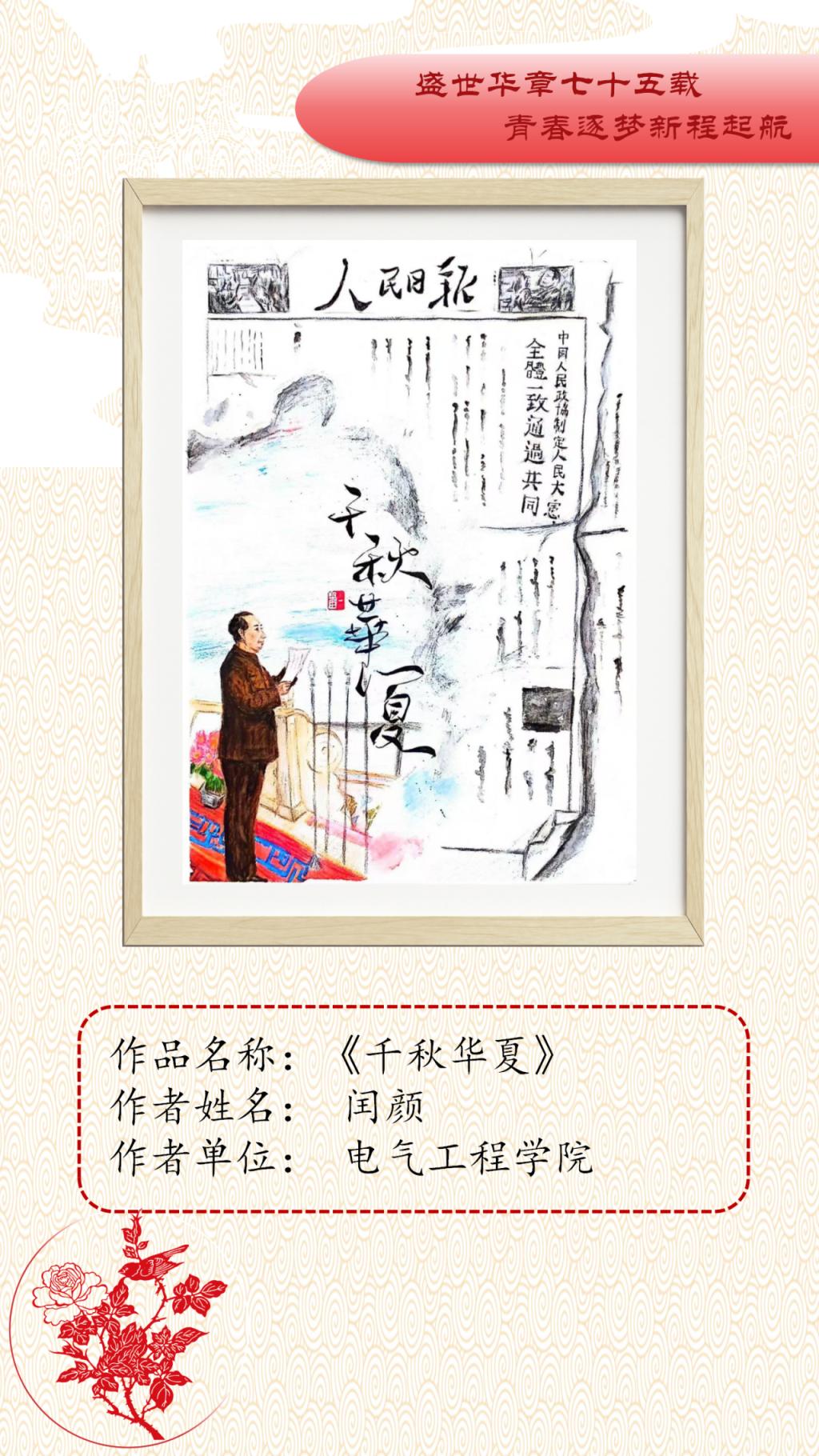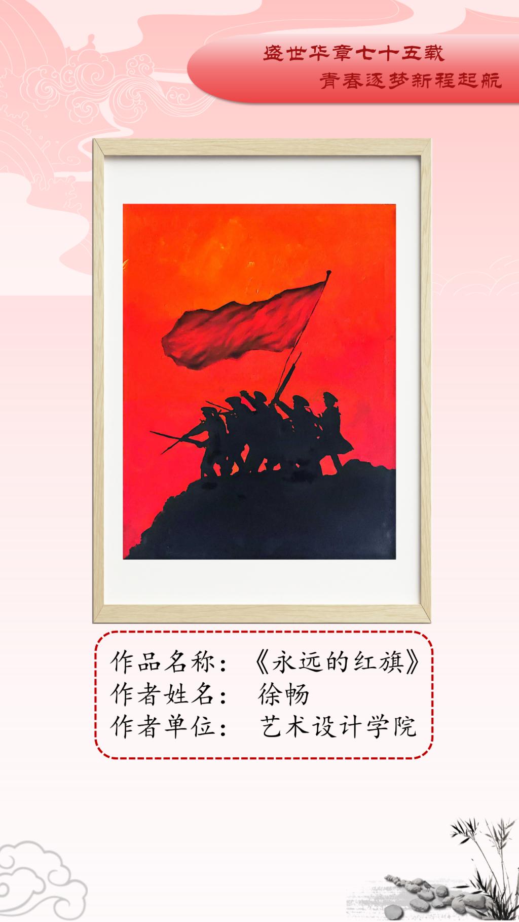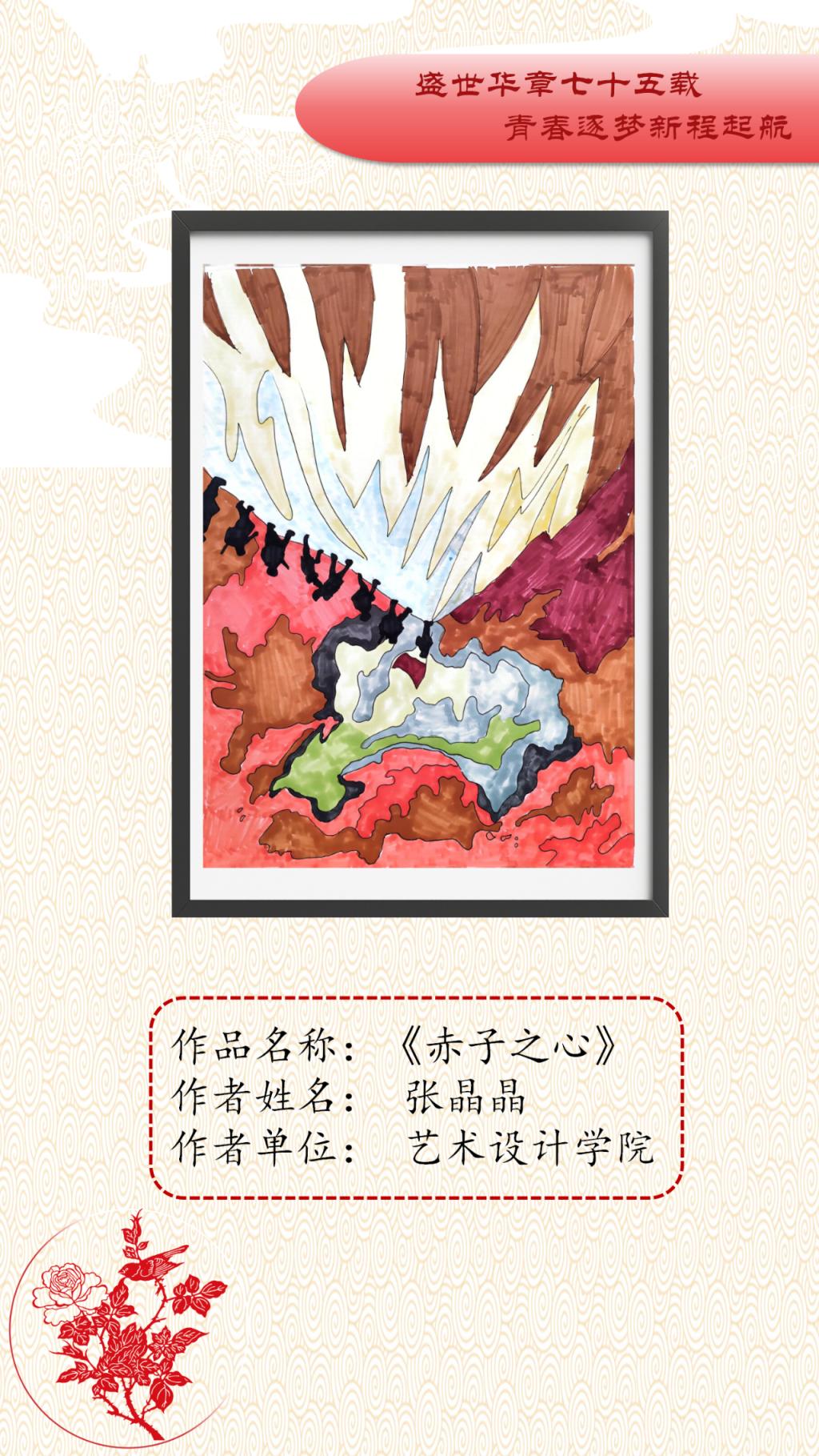 本次艺术作品展面向全校公开征稿,共收到150余件艺术作品,经初评、复评最终评选出参展作品45件,其中一等奖10人、二等奖15人、三等奖20人。展出作品涵盖中国画、油画、连环画、剪纸、书法等多个艺术表现形式,作品以党的精神为指引,以多样化、多元素、多维度的艺术表达展现了传统艺术的深厚底蕴。从传统的绘画形式到现代的艺术表达,从对革命精神的细腻描绘到对爱国基因的深刻洞察,无不体现新时代中国的创新与活力。一幅幅精美绝伦的作品,以精妙的艺术表达结实爱国基因和时代精神的传承基础,增强了公司师生的文化自信,推动了艺术教育与实践的深度融合。谨以此展览向中华人民共和国成立75周年献礼。