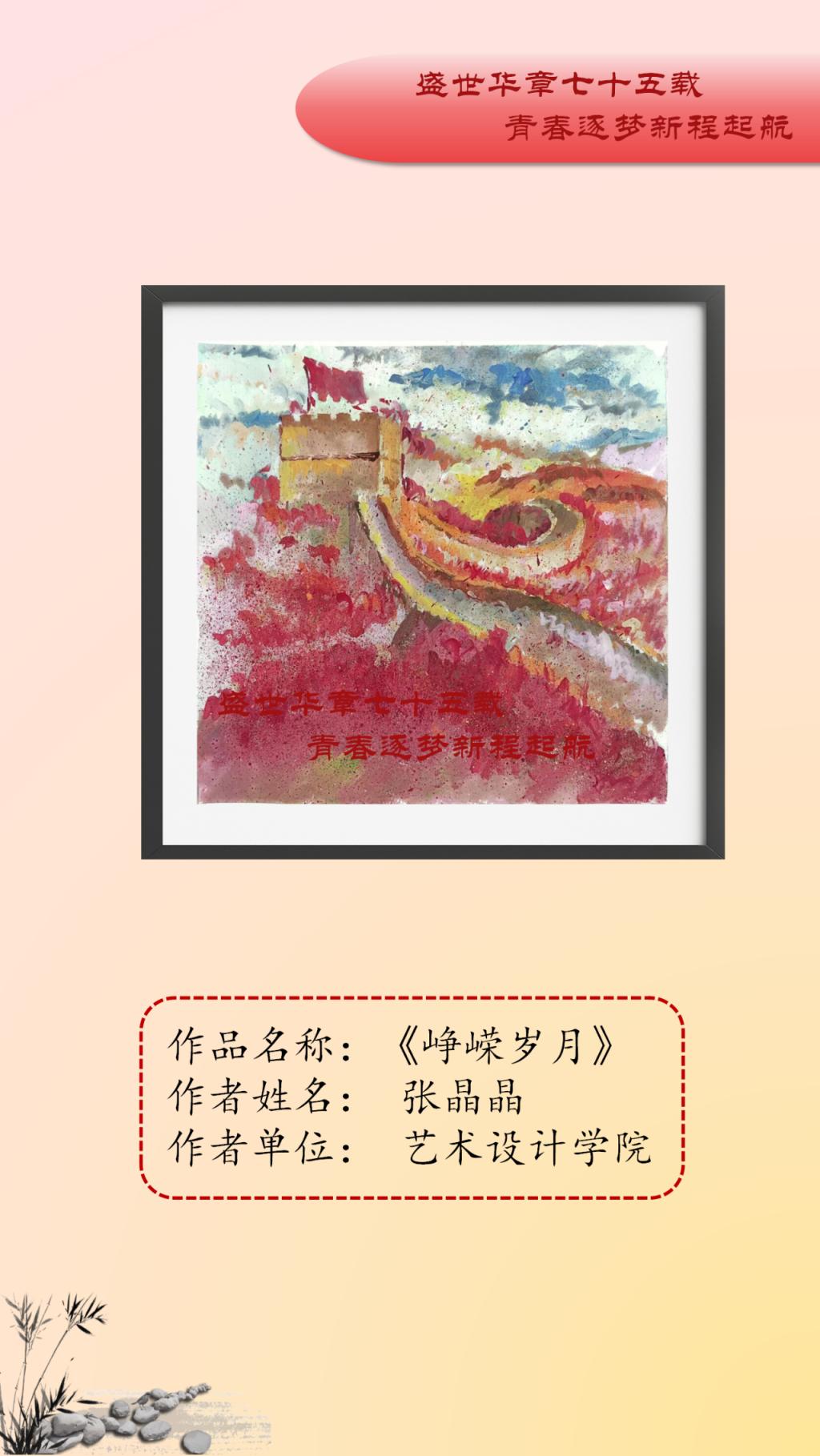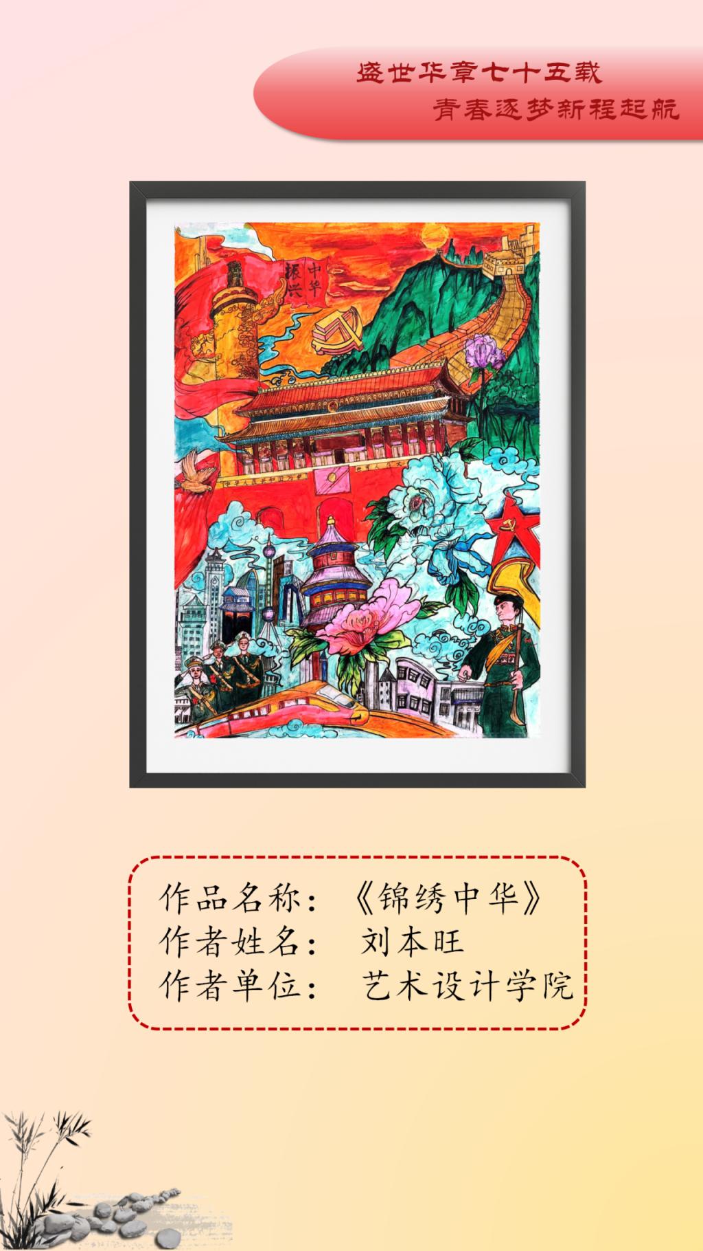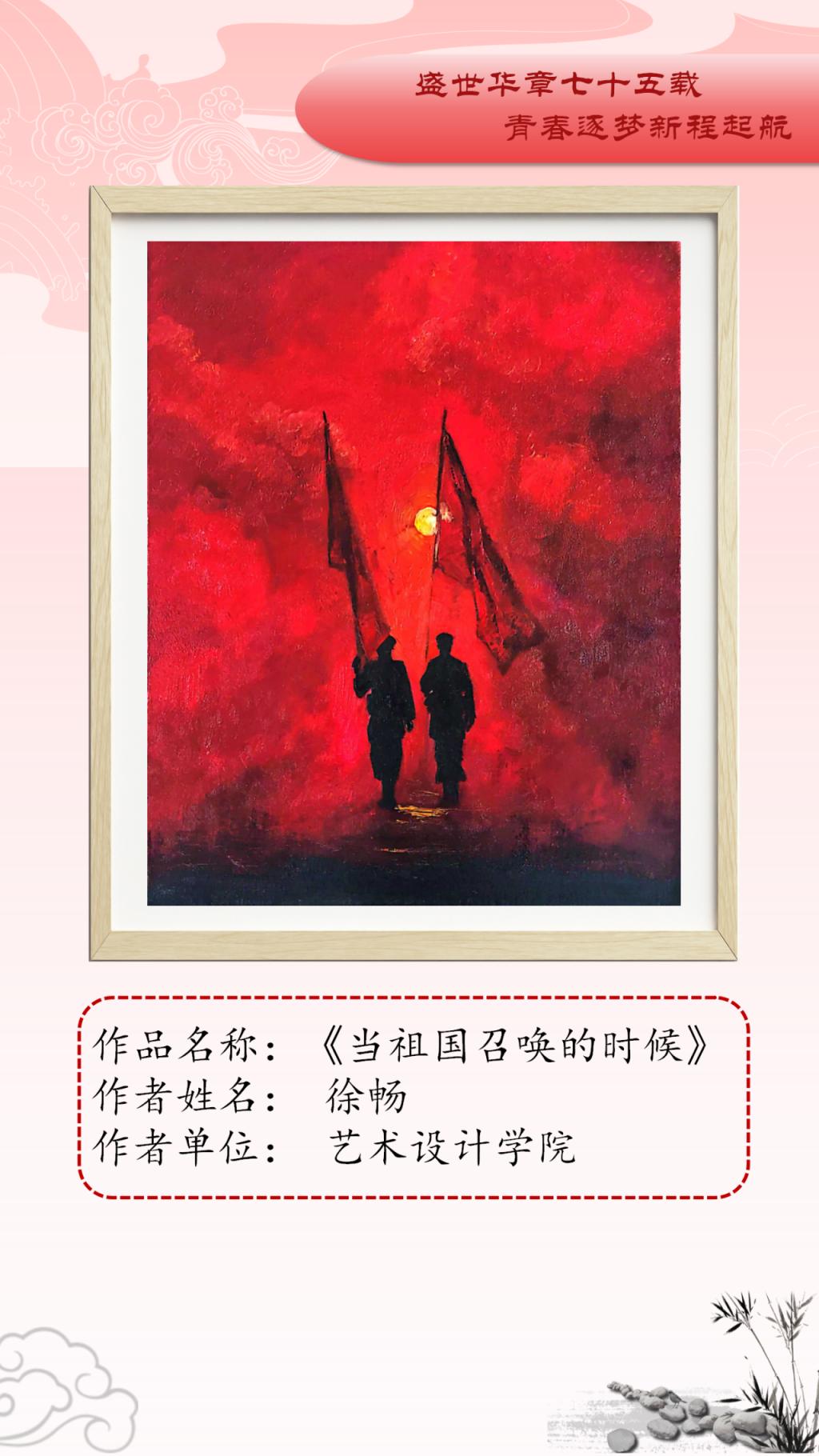 本次艺术作品展面向全校公开征稿,共收到150余件艺术作品,经初评、复评最终评选出参展作品45件,其中一等奖10人、二等奖15人、三等奖20人。展出作品涵盖中国画、油画、连环画、剪纸、书法等多个艺术表现形式,作品以党的精神为指引,以多样化、多元素、多维度的艺术表达展现了传统艺术的深厚底蕴。从传统的绘画形式到现代的艺术表达,从对革命精神的细腻描绘到对爱国基因的深刻洞察,无不体现新时代中国的创新与活力。一幅幅精美绝伦的作品,以精妙的艺术表达结实爱国基因和时代精神的传承基础,增强了公司师生的文化自信,推动了艺术教育与实践的深度融合。谨以此展览向中华人民共和国成立75周年献礼。