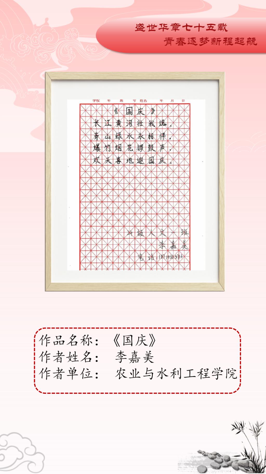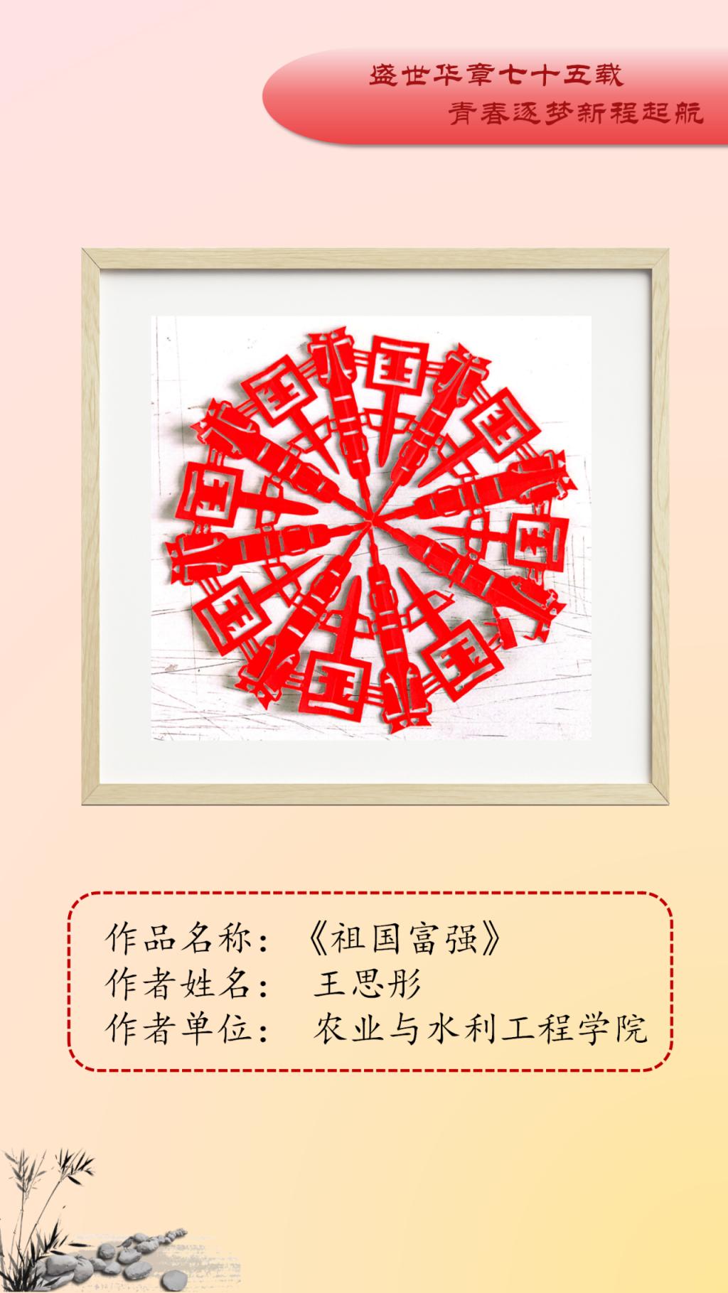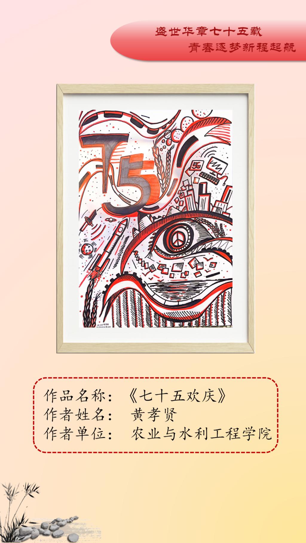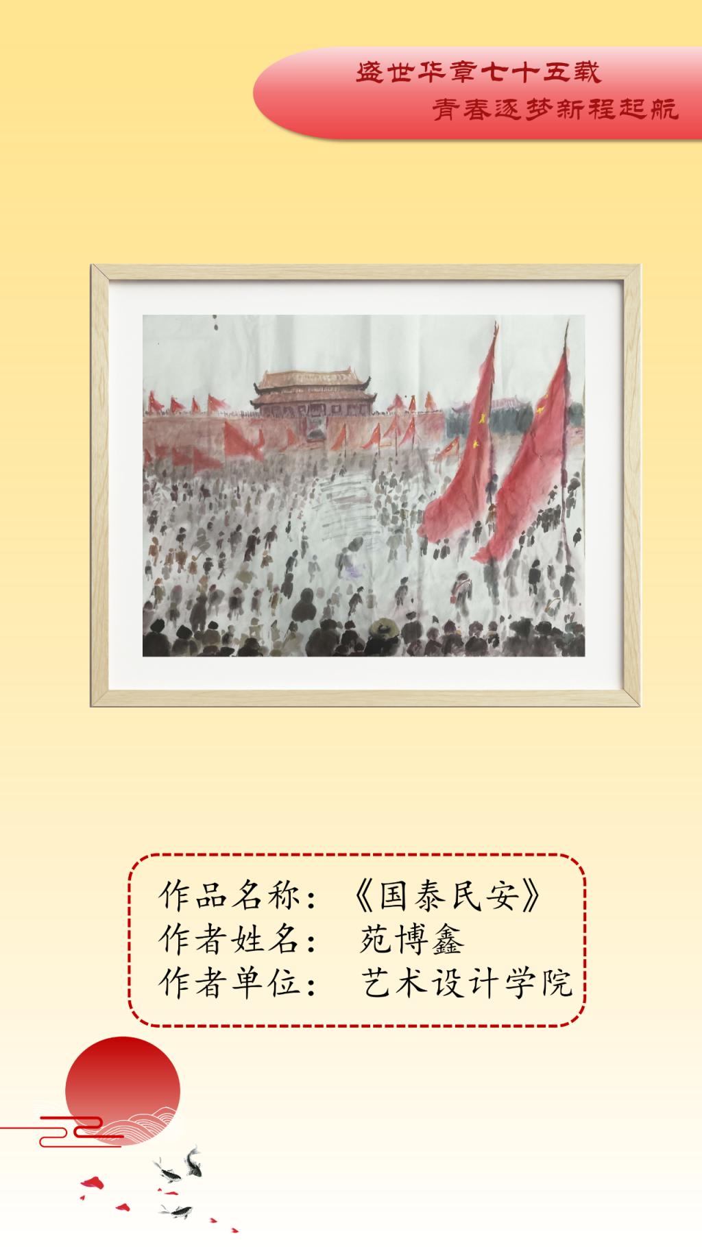 本次艺术作品展面向全校公开征稿,共收到150余件艺术作品,经初评、复评最终评选出参展作品45件,其中一等奖10人、二等奖15人、三等奖20人。展出作品涵盖中国画、油画、连环画、剪纸、书法等多个艺术表现形式,作品以党的精神为指引,以多样化、多元素、多维度的艺术表达展现了传统艺术的深厚底蕴。从传统的绘画形式到现代的艺术表达,从对革命精神的细腻描绘到对爱国基因的深刻洞察,无不体现新时代中国的创新与活力。一幅幅精美绝伦的作品,以精妙的艺术表达结实爱国基因和时代精神的传承基础,增强了公司师生的文化自信,推动了艺术教育与实践的深度融合。谨以此展览向中华人民共和国成立75周年献礼。
