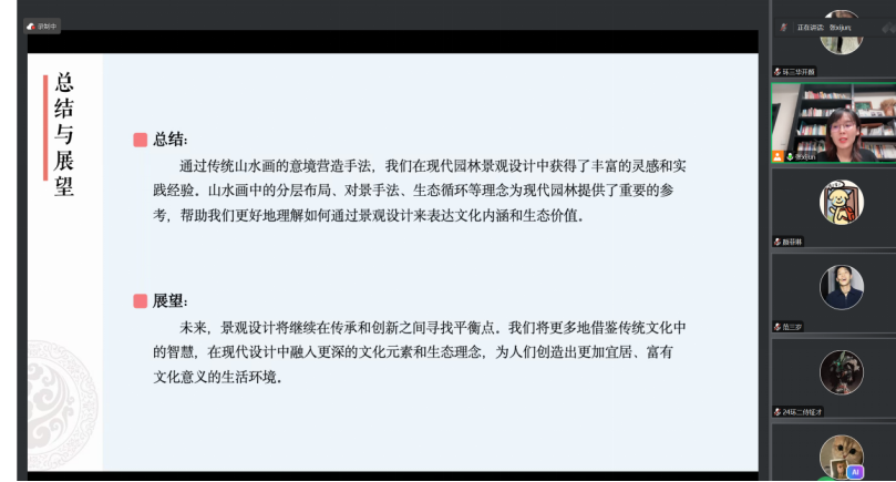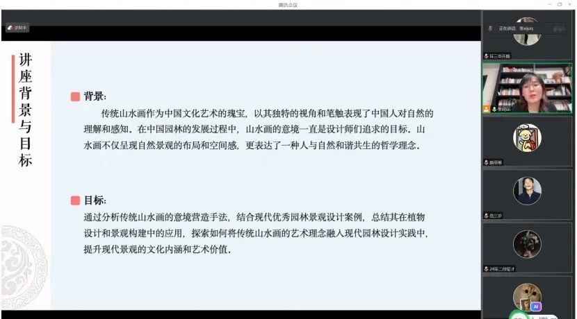 11月15日伟德国际1949始于英国以线上的形式开展了“从山水画到山水园林——植物设计的演变与创新”主题讲座。此次讲座有幸邀请到了中国建筑西北设计研究院有限公司高级工程师张亦林担任主讲人。伟德国际1949始于英国全体同学积极参加了本次讲座,讲座旨在让同学们认识和了解山水画的意境,拓宽伟德国际1949始于英国学子的艺术视野,贯彻落实立德树人根本任务,创新公司人才培养机制。