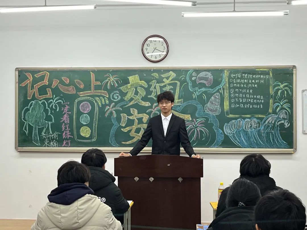 班会期间,各班长支书向同学们详细地讲解了交通安全法规、常见交通标识含义以及事故发生的主要原因。此外,对于事故发生的主要原因,各班长支书从行人、车辆、道路等多角度展开分析,并以图文结合的方式,列举近期具有代表性的交通事故案例,让同学们直观地感受到遵守交通规则的重要性。随后,班长支书从事故发生的根源、造成的后果以及如何避免类似悲剧重演入手,引导同学们从真实案例中吸取教训。让同学们犹如身临其境,真切感受到违法违规行为的巨大危害。