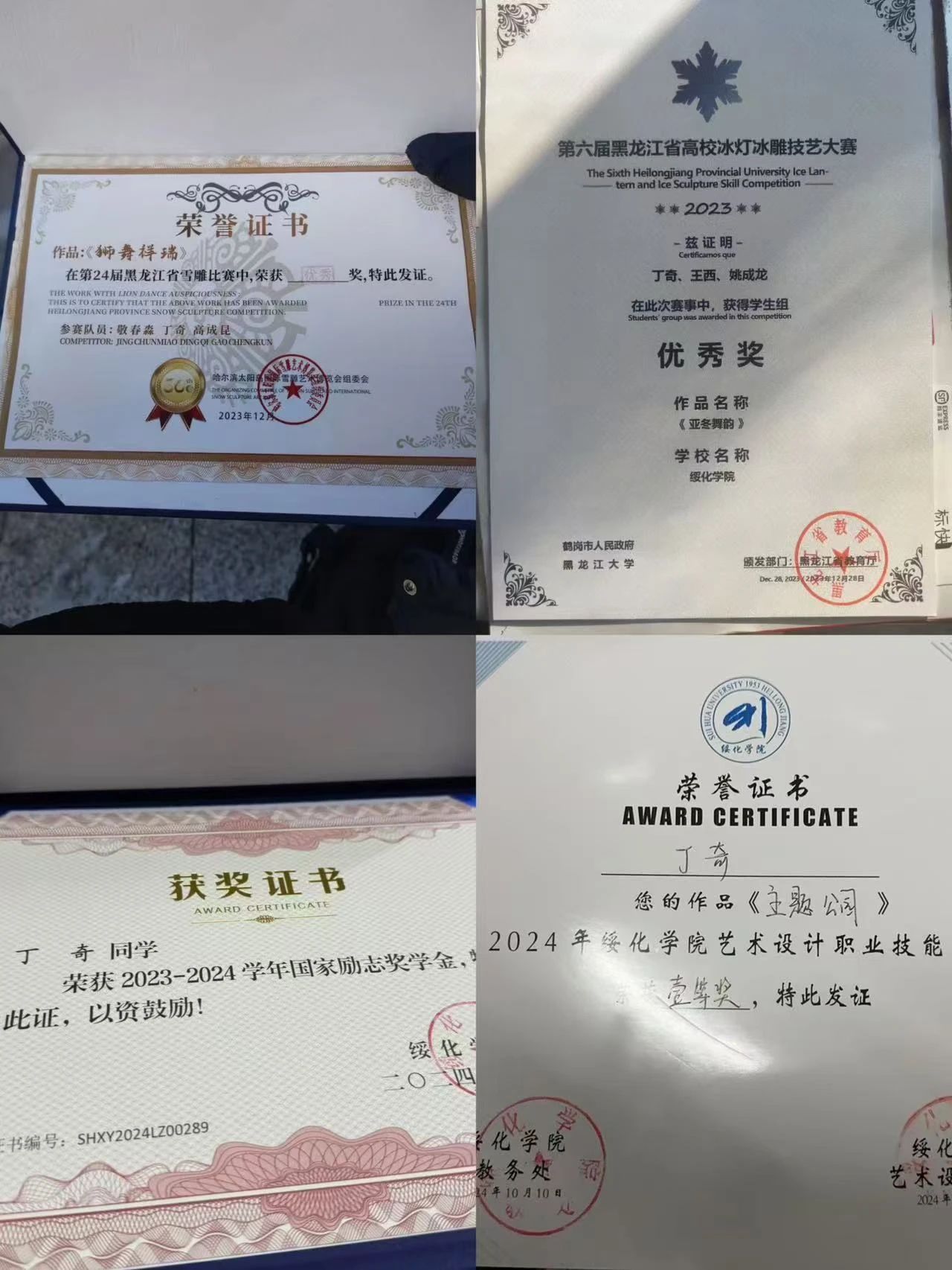 2024年黑龙江省雪雕比赛优秀奖;