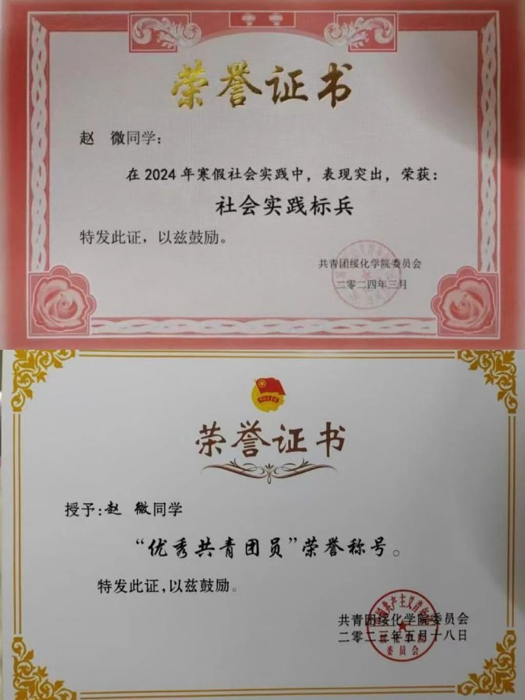 2023年荣获优秀共青团员