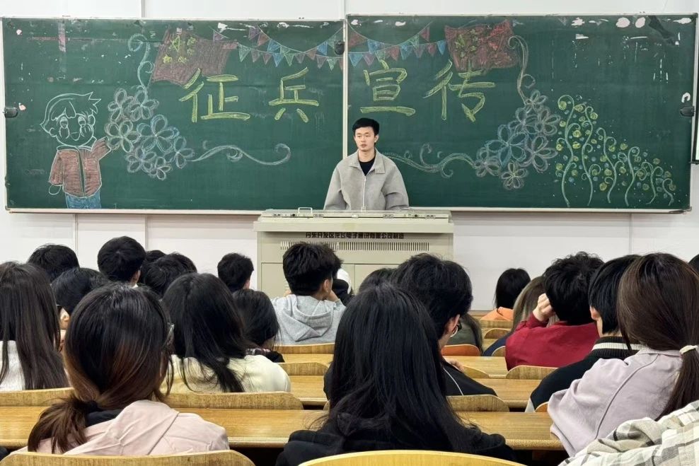 活动伊始,王天祺系统讲解了报名条件、入伍流程、优待政策等核心内容,帮助同学们更直观、更全面地了解大学毕业生征兵政策和相关待遇保障,为同学们打开了“就业+参军”的发展思路。他指出,参军入伍不仅是履行国防义务的重要途径,更是毕业生在职业规划中实现多元化发展的关键选择,并鼓励毕业生将职业选择与国防建设相结合,在更广阔的舞台上实现人生价值。