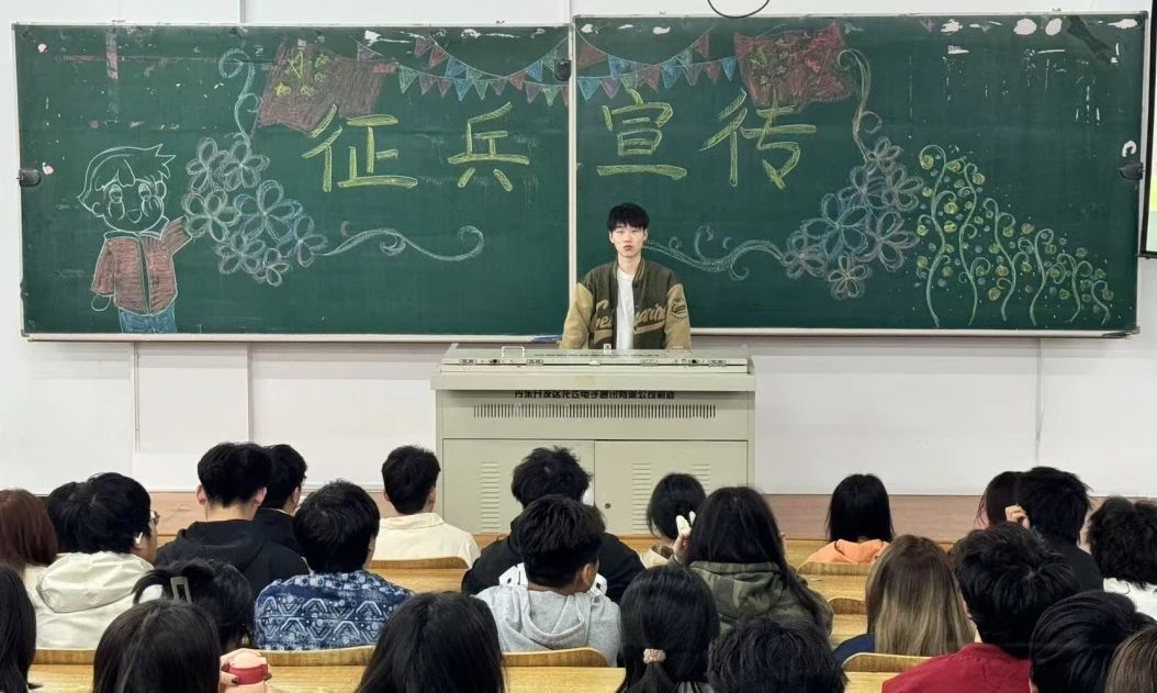 随后,王重骥回顾了自己的军旅历程,分享了军旅生涯对其个人成长和职业发展的积极影响,激励同学们抓住在部队考学提干、选取士官等发展机会,让青春在军营中绽放光彩,为退役后就业创业积累宝贵经验。活动最后,张士鑫向大家讲述了人民军队的光辉历程、新时代军人的飒爽英姿,以及国防建设的重要意义,进一步激发了同学们的爱国热情与参军意愿。