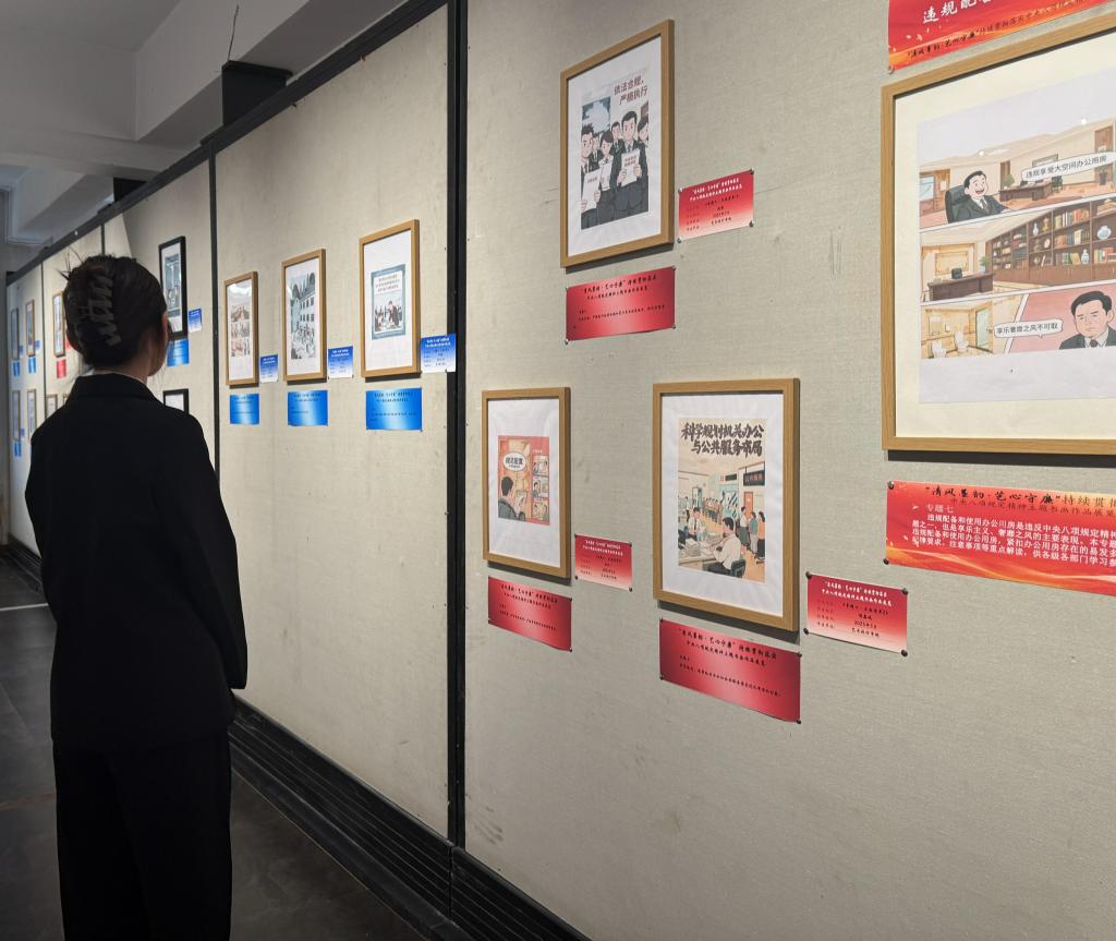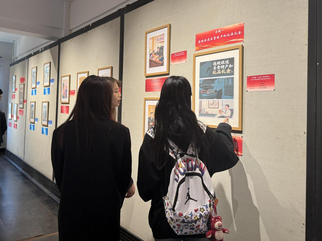 会后,毕业生党员来到游艺楼205展馆,参观由公司党总支举办的“清风墨韵·艺心守廉”中央八项规定精神主题文化展览,此次展览采用“正面清单”与“负面清单”对比呈现形式深刻诠释中央八项规定精神的丰富内涵,弘扬清风正气。每一幅原创作品都勾勒出崇廉尚简的美好图景,凝聚着对中央八项规定精神的深刻理解和感悟,一个个生动的案例再次为党员员工敲响警钟,此次参观学习为毕业生党员做好职前“最后一公里”的廉政教育。