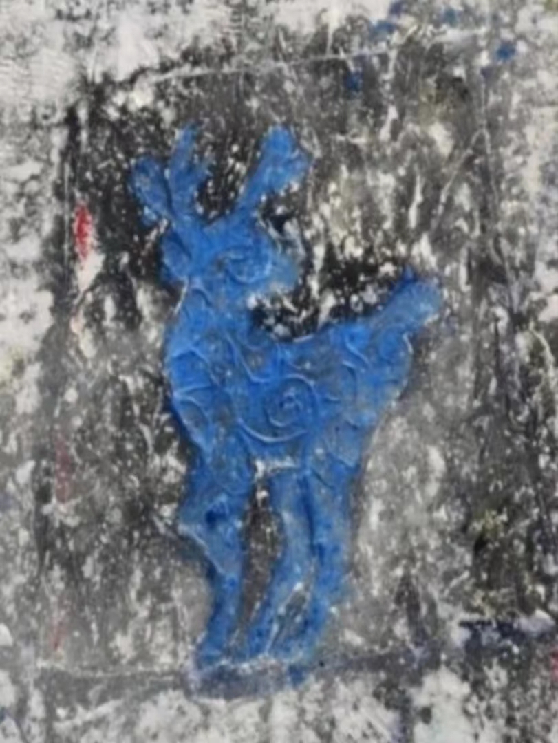 谐音译文《冰城的鹿》. 花纹及线条的韵律塑造鹿的形态,以海妮兰颜色为作品注入灵魂,以冰封背景衬托冰城主题。