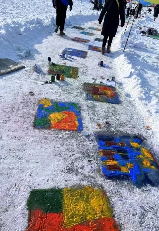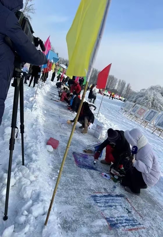 为助力亚冬会“百米冰雪书画长卷”着色添彩,工作室的同学们借此次活动表达对冰雪艺术的热爱,每位队员将多年积累的艺术成果展现于这个美丽的冰雪平台上。作为新的艺术工作室,以此次活动充作为本工作室的第一项活动,是队员们的第一项挑战。截然不同的是以刀代笔,以冰为纸,刻画独特的艺术情感。将玉米叶的编制思路及玉米画的构成技巧运用于冰雪,技艺与冰雪相融,在冰上做文章!